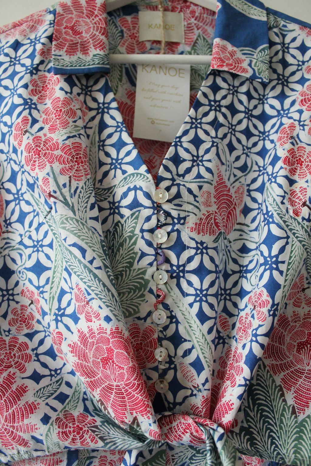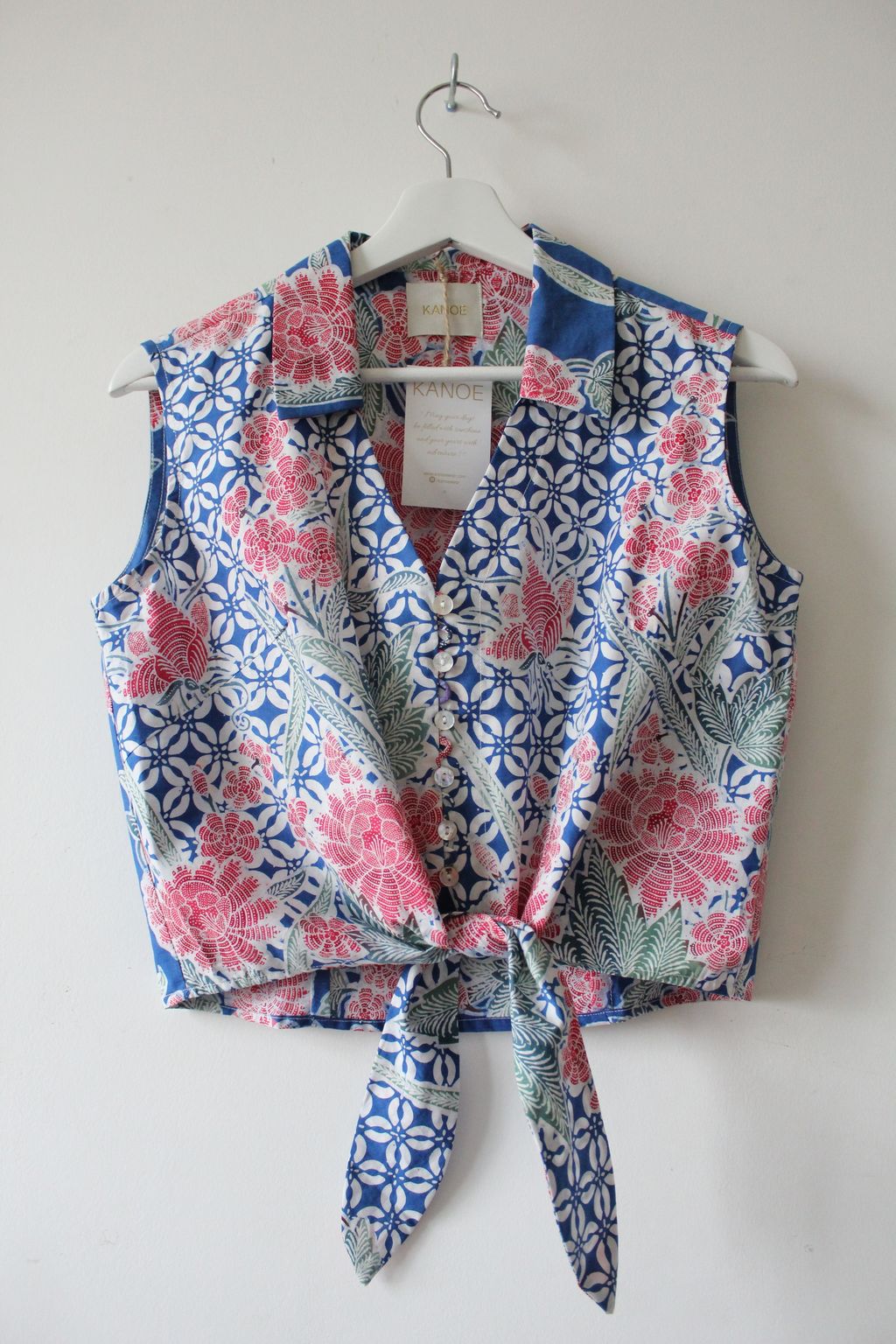 These pastel sleeveless front tie top are made from intricate hand stamped batik textile. Not one piece alike, you will love how beautiful the colours and print of this batik is made by skilled artisans of centuries of batik making wisdom. These batik come from a region where the batik makers have influence from Chinese and European merchants in which is on display in the motifs and colours of the batik.