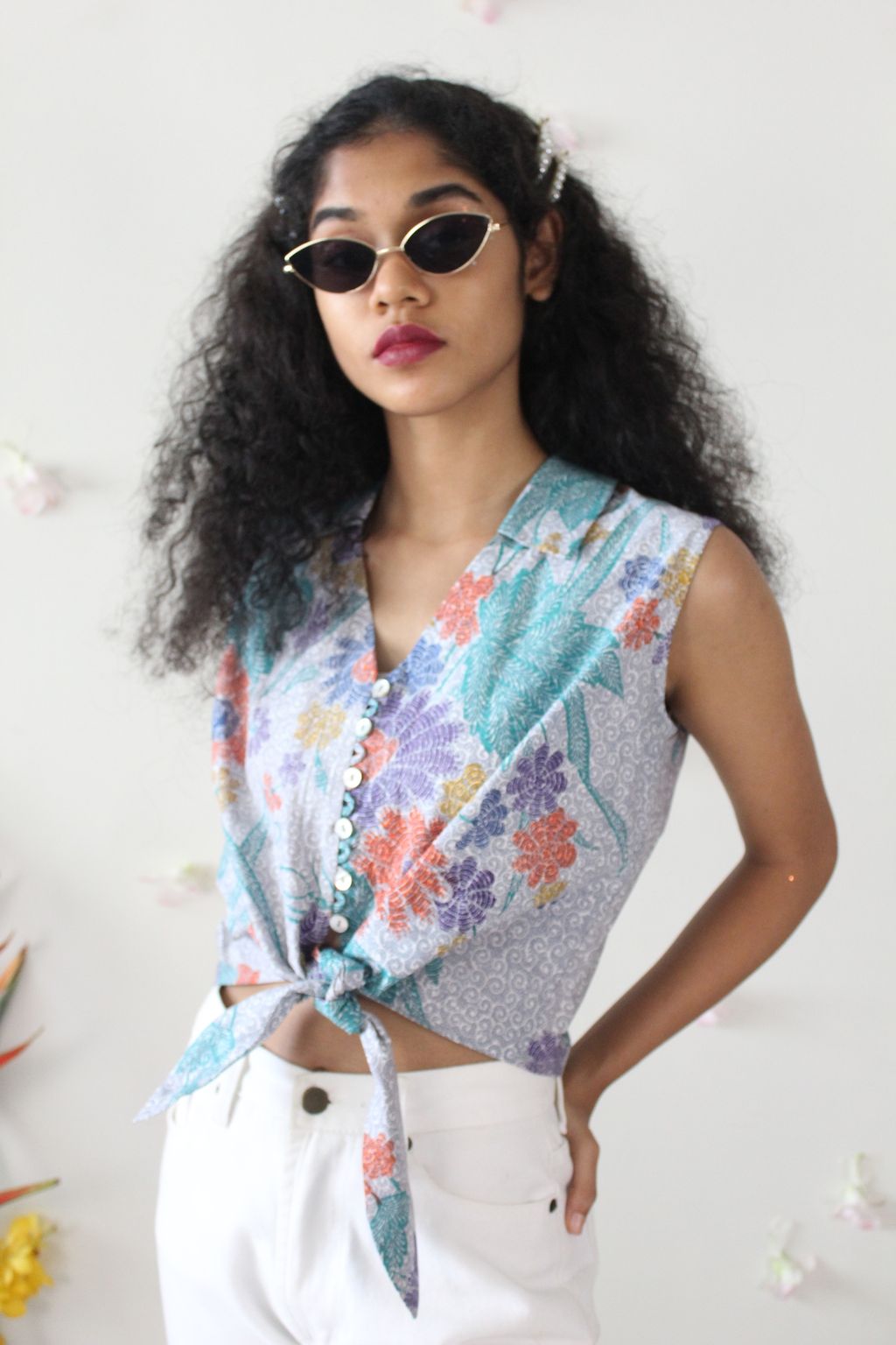 Pastel Sleeveless Vintage Top - Elisa ( Handstamped Batik )
