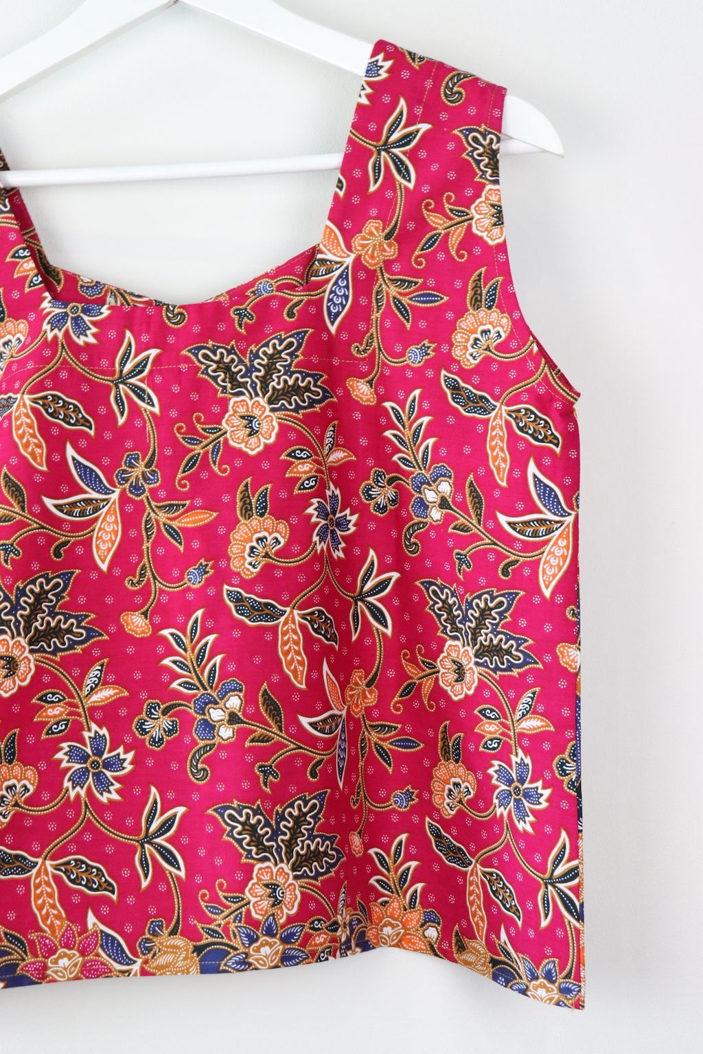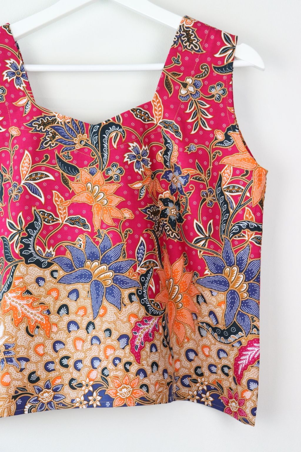 You want something cooling yet modest and timeless. Made of 100% cotton batik, it has a flattering sweetheart neckline in the front and a modern square neckline at the back. Our very own unique twist !