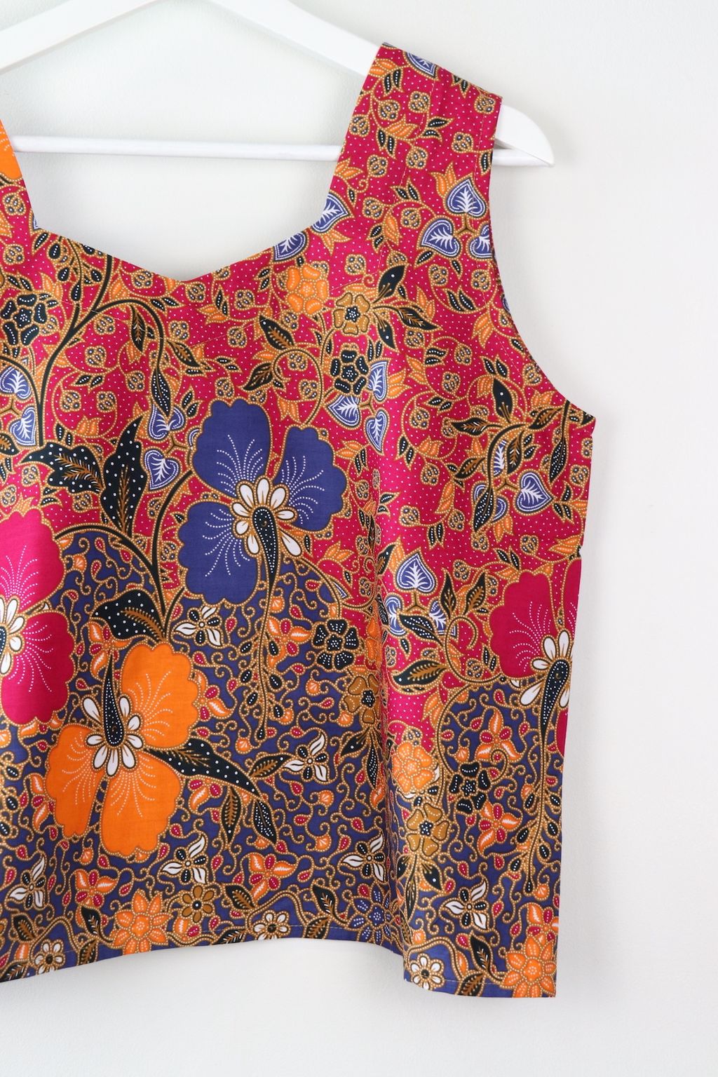 You want something cooling yet modest and timeless. Made of 100% cotton batik, it has a flattering sweetheart neckline in the front and a modern square neckline at the back. Our very own unique twist !
