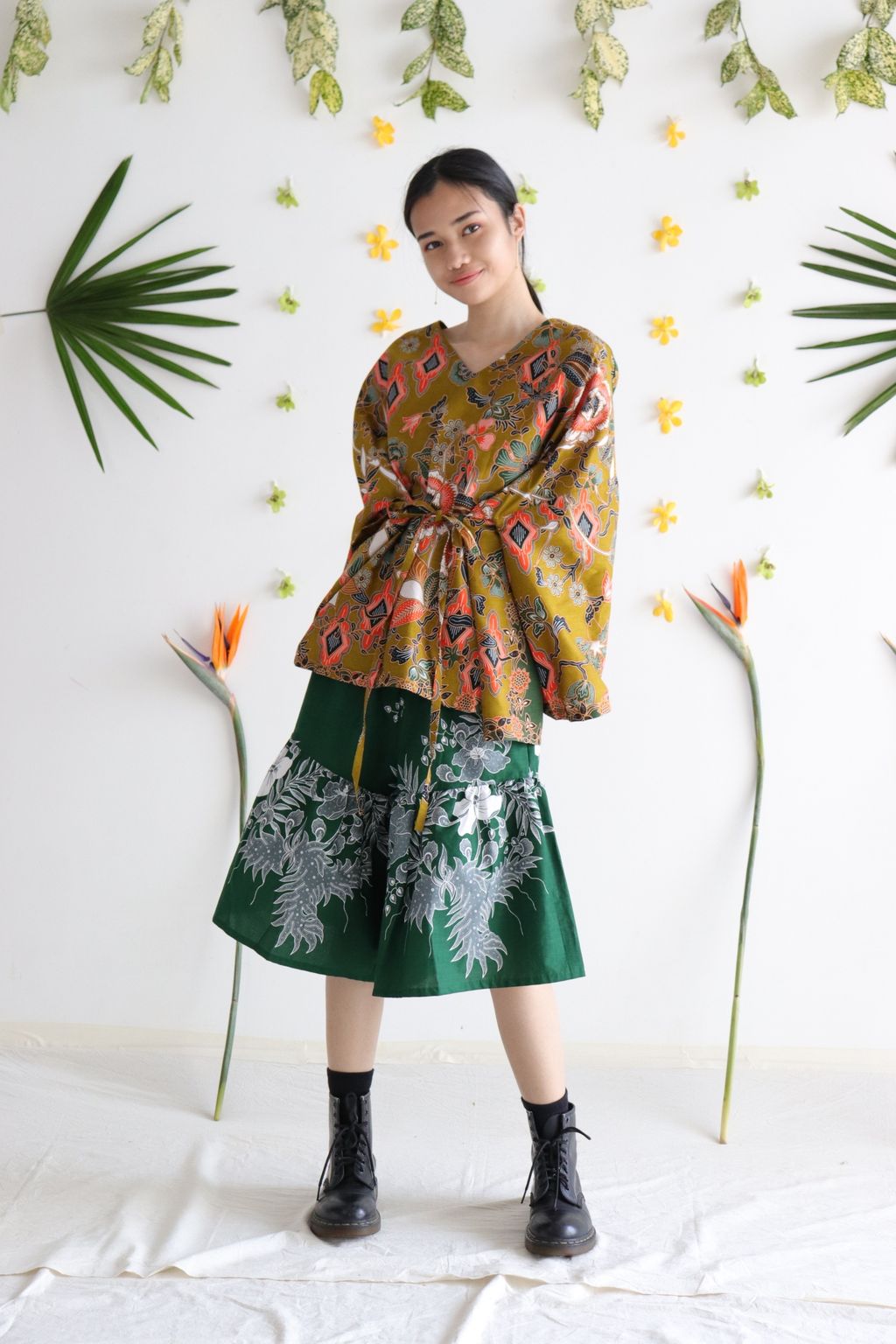Model Ashlee stands at 163cm and is wearing the Big Girl Top both tied at the waist and loose.