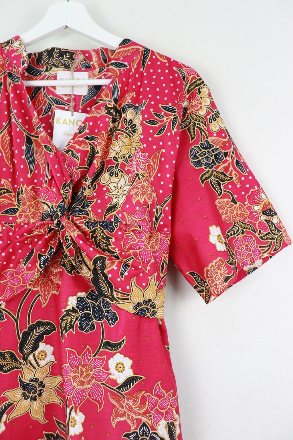 Twisted Front Dress w/ Mandarin Collar - Watermelon Blossoms