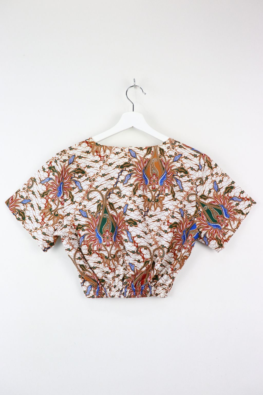 Twisted Front Batik Top - White Lotus (Light Blue)