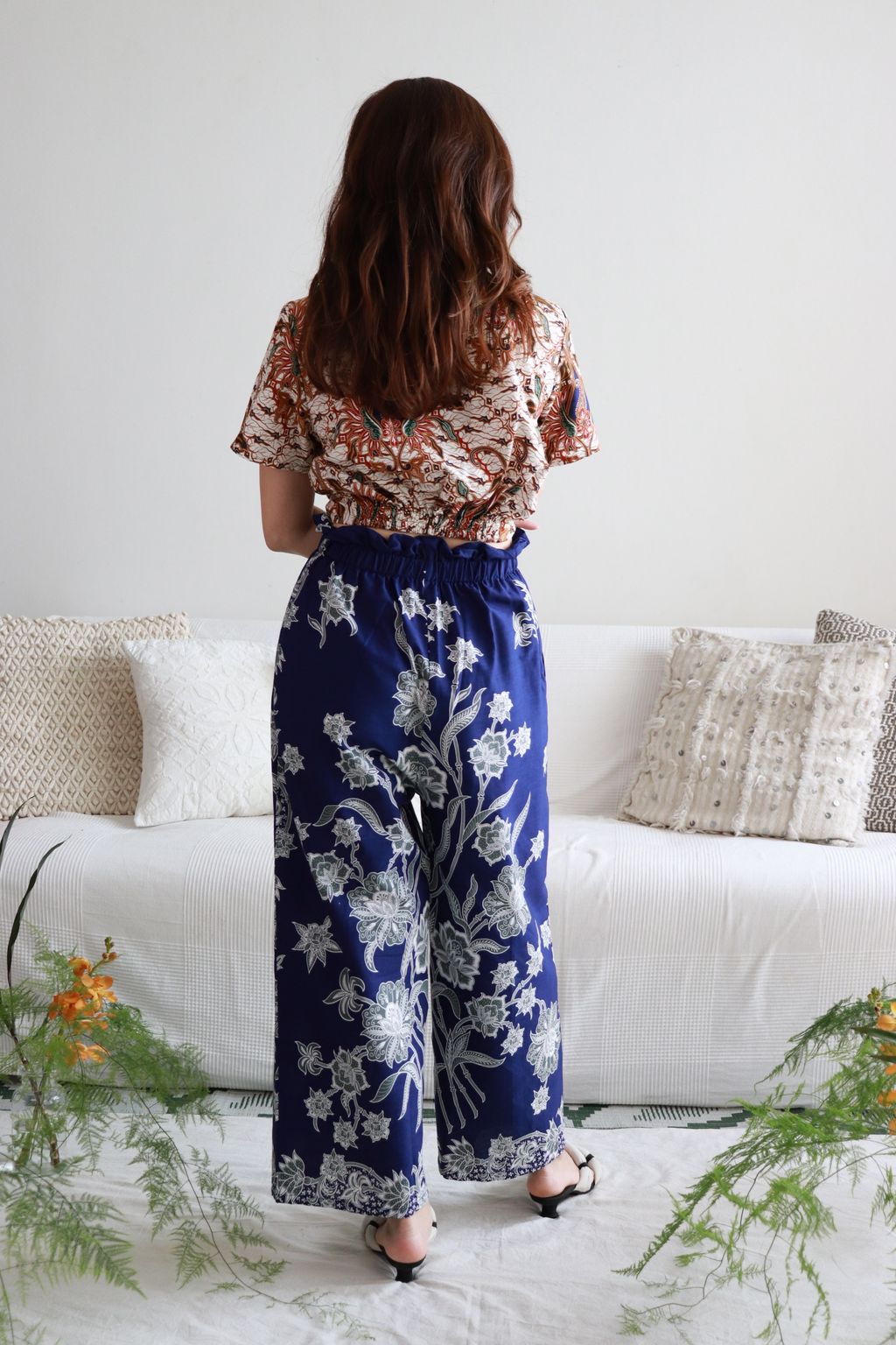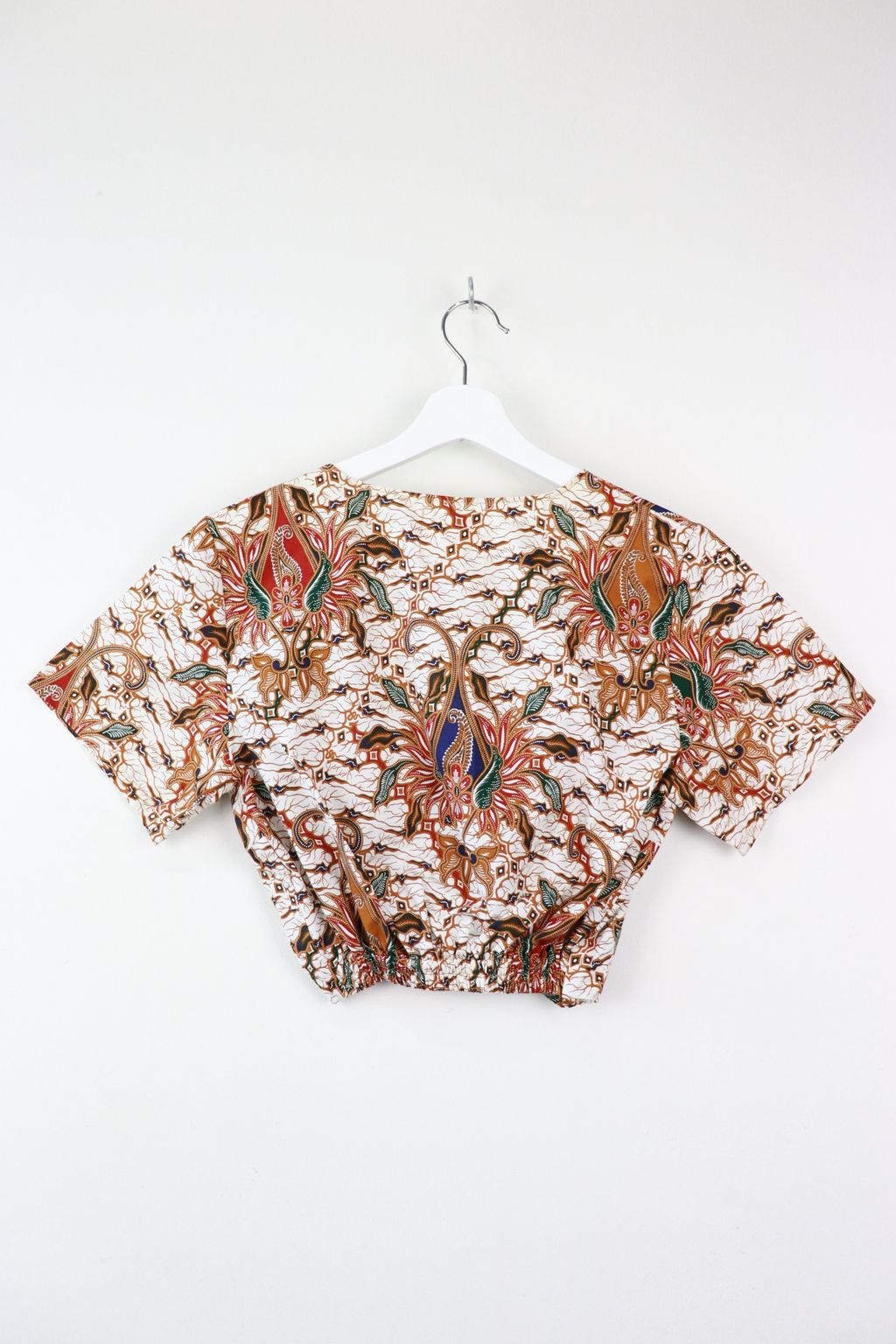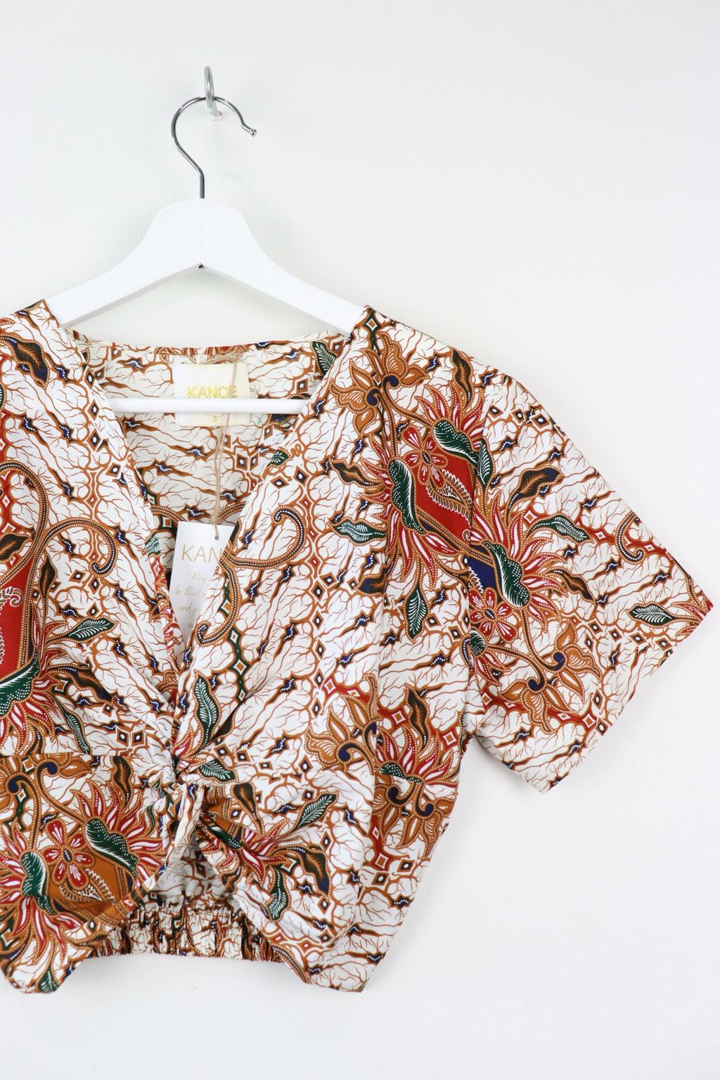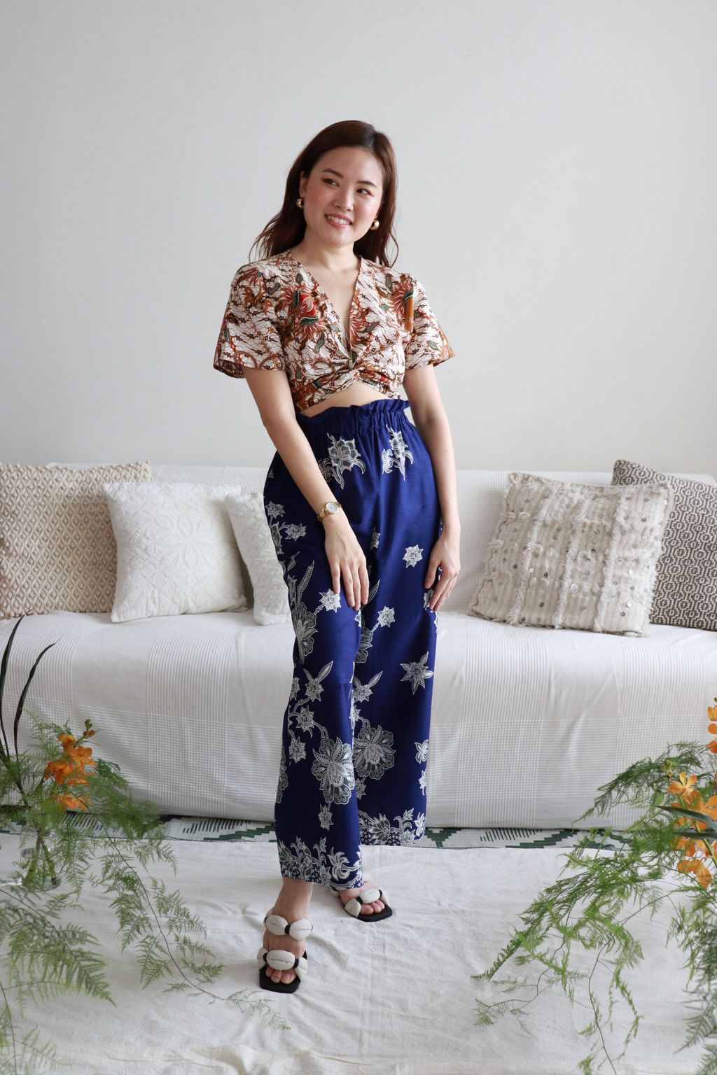 Twisted Front Batik Top - White Lotus (Dark Blue)