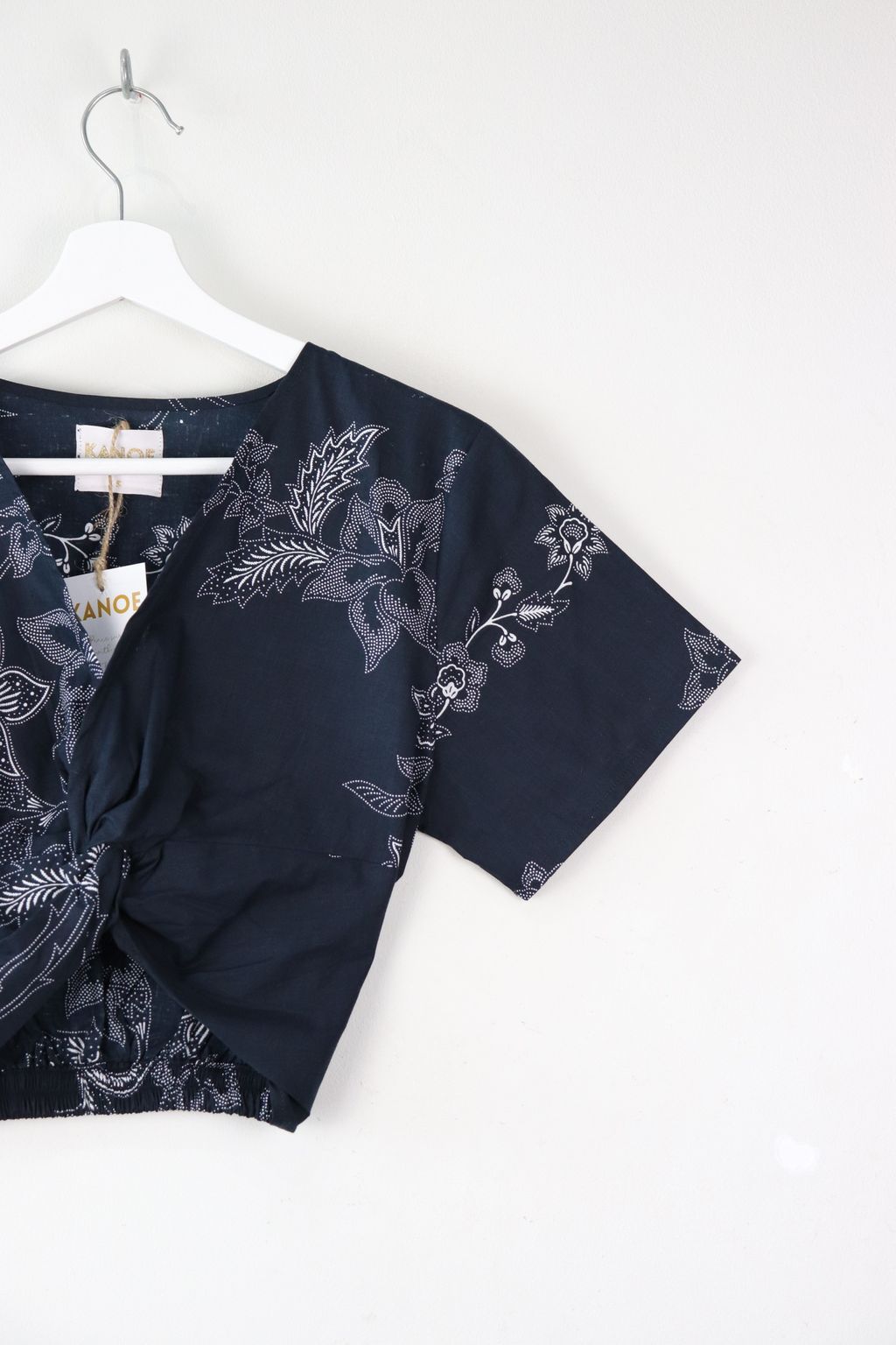 Twisted Front Batik Top - Midnight Blooms ( S )