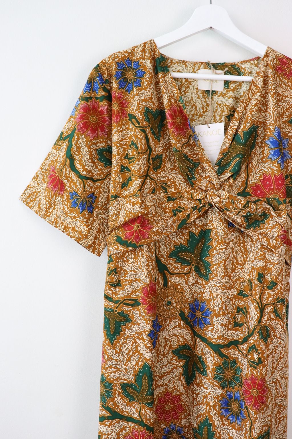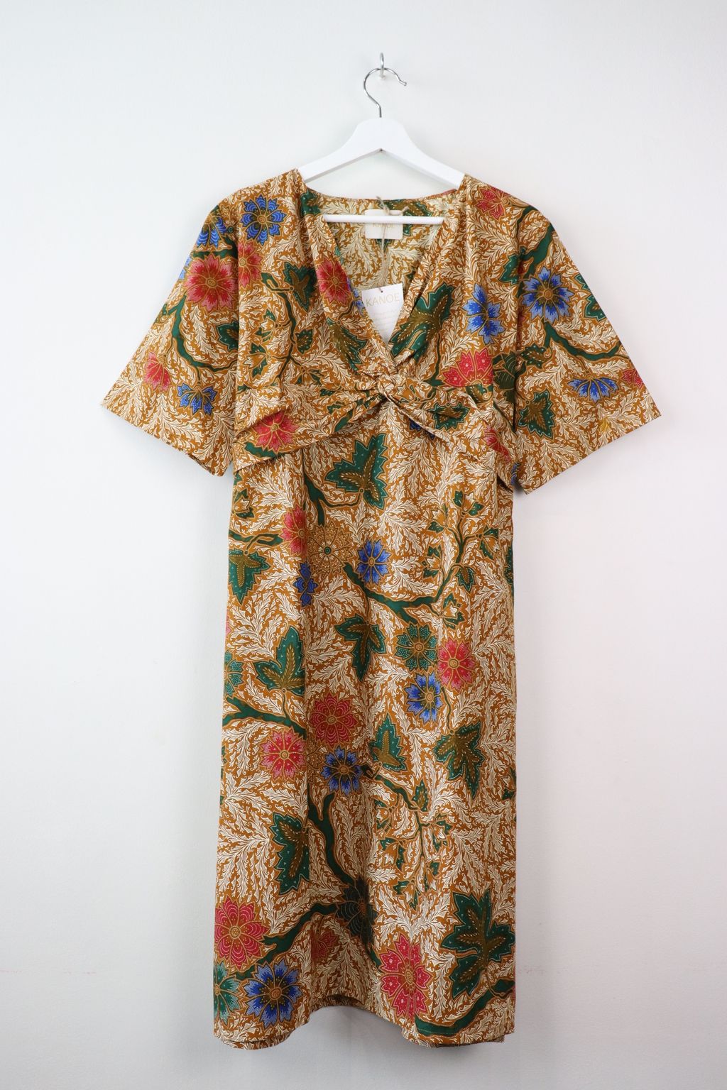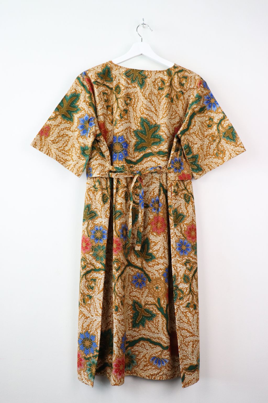 Has pockets at the sides and a tie to niche in at the waist accentuating the feminine shape.