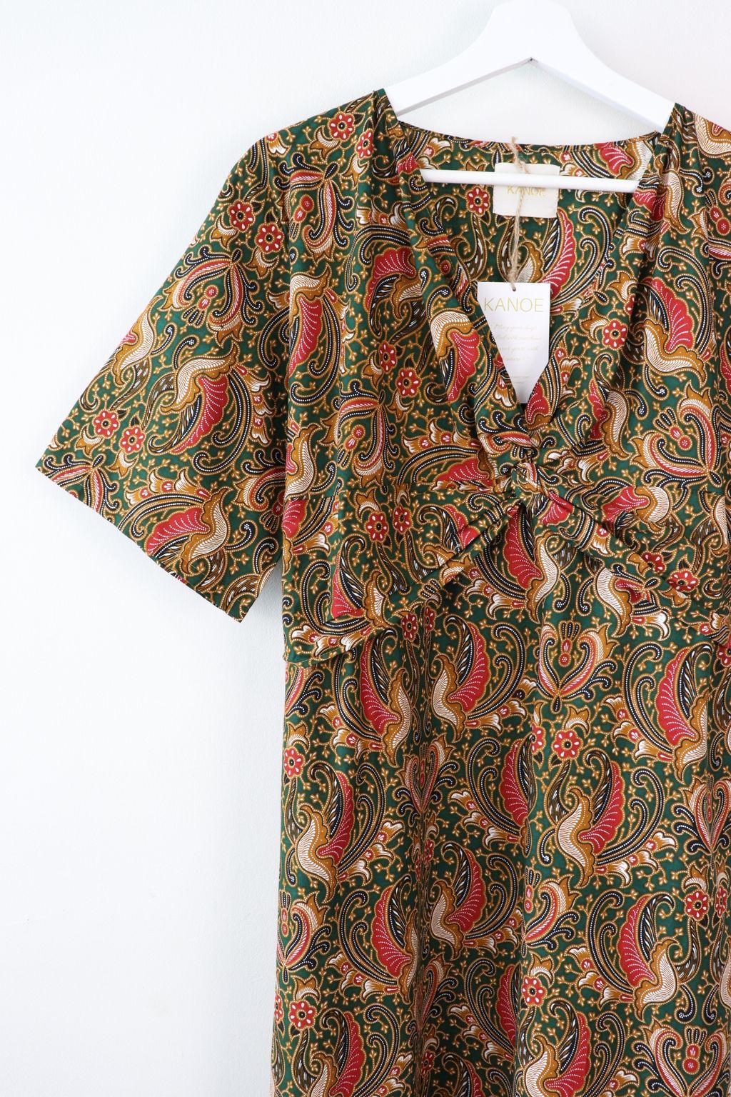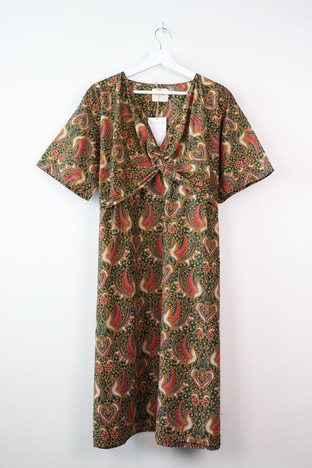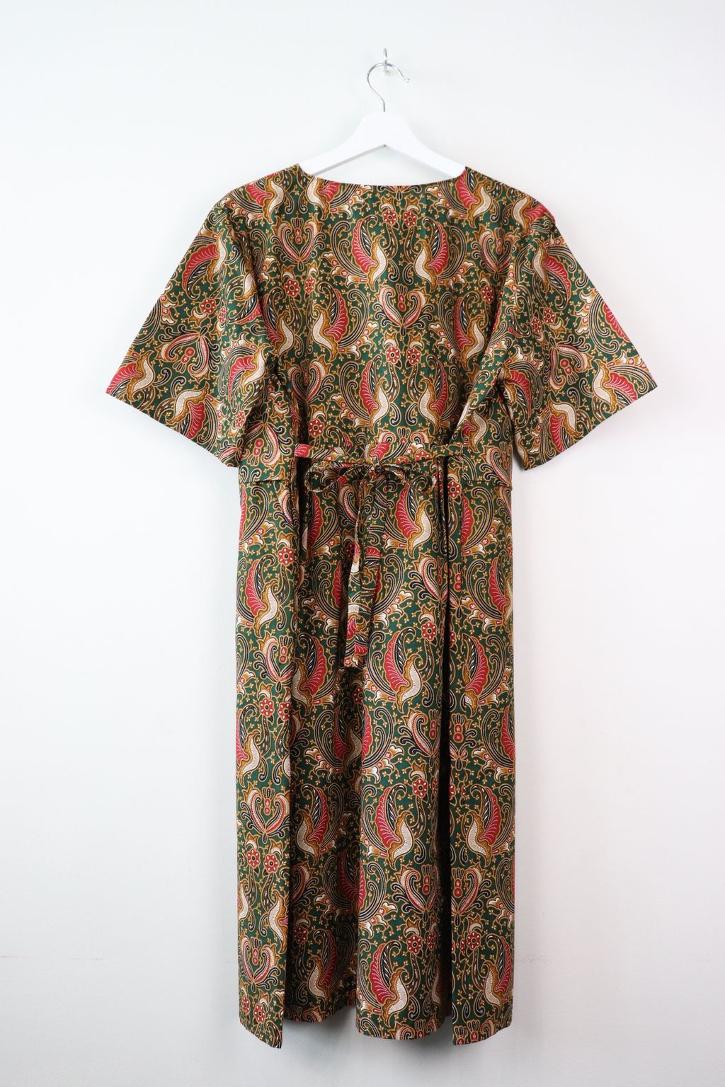 Has pockets at the sides and a tie to niche in at the waist accentuating the feminine shape.