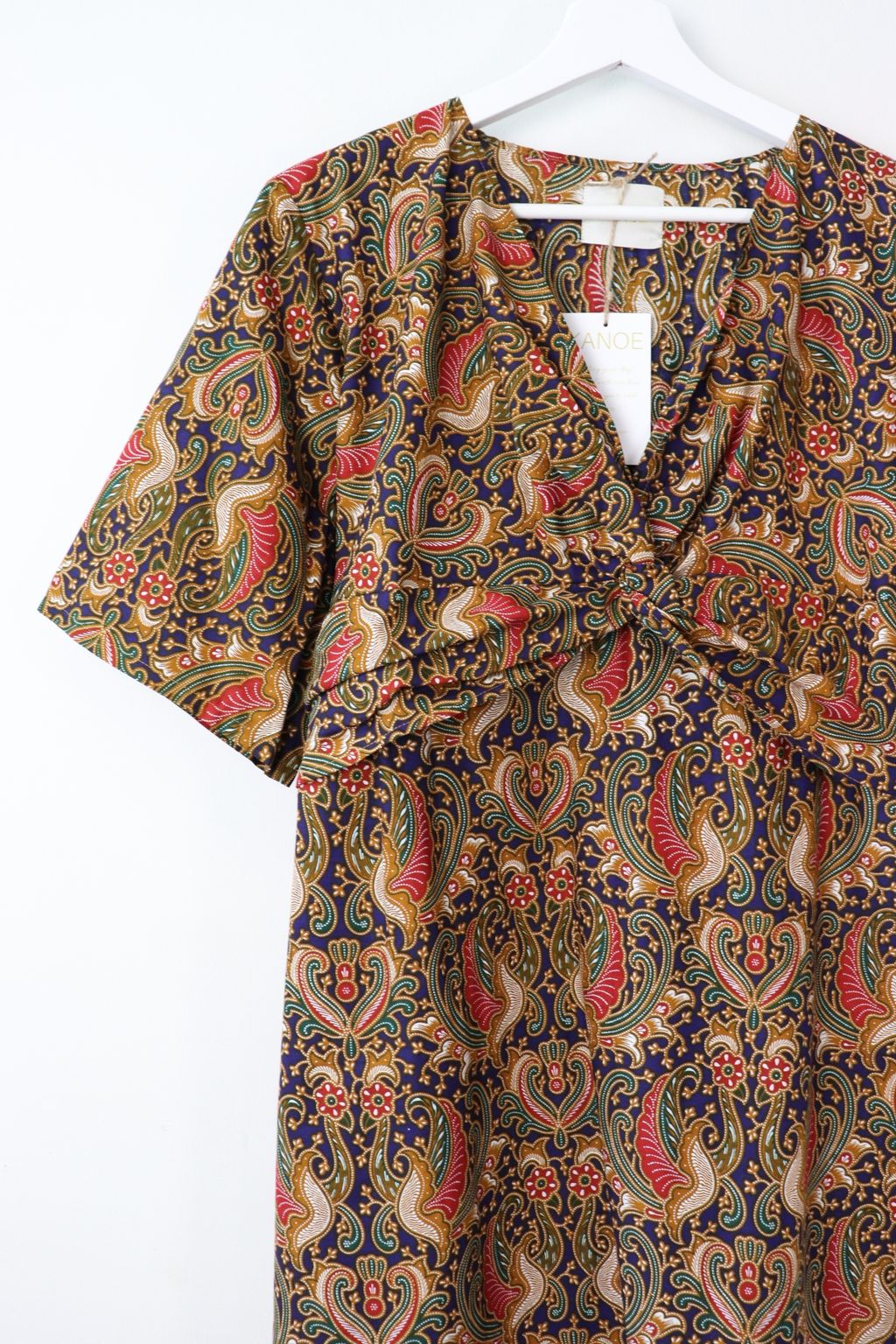 Has pockets at the sides and a tie to niche in at the waist accentuating the feminine shape.