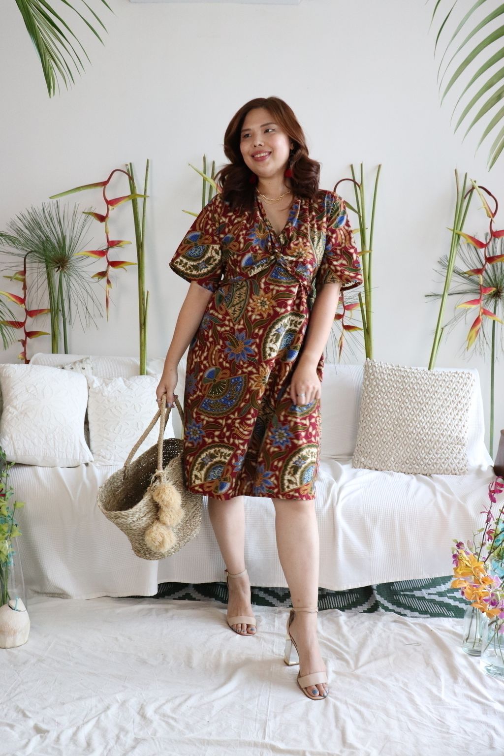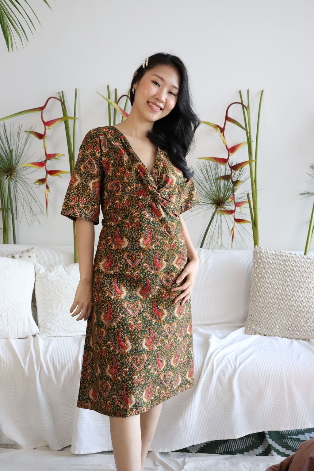 Has pockets at the sides and a tie to niche in at the waist accentuating the feminine shape.