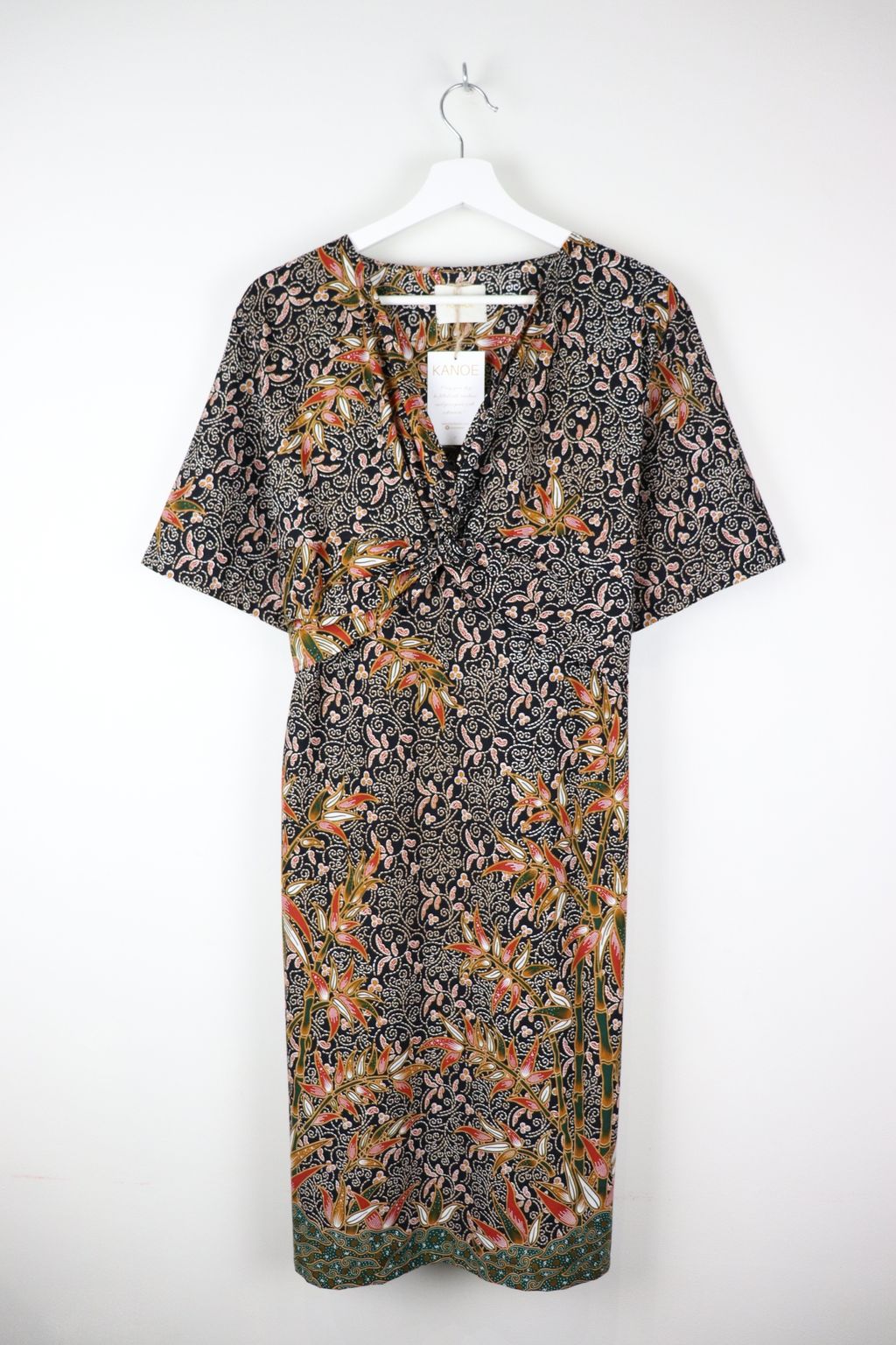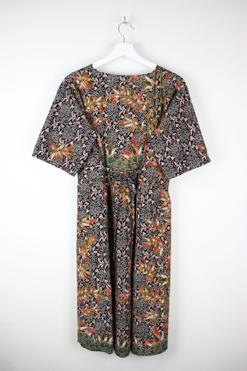 Has pockets at the sides and a tie to niche in at the waist accentuating the feminine shape.