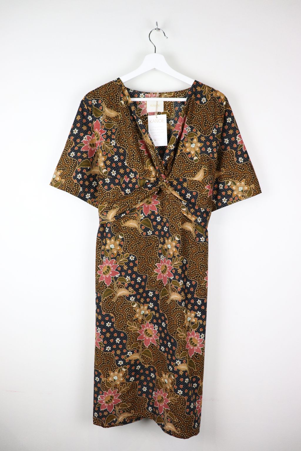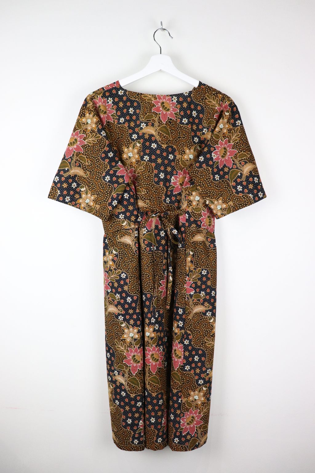 Has pockets at the sides and a tie to niche in at the waist accentuating the feminine shape.