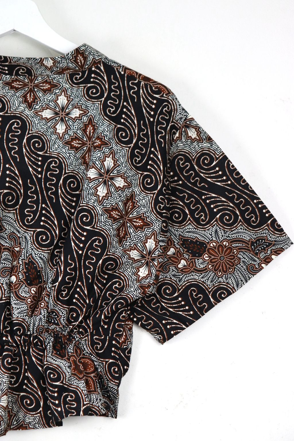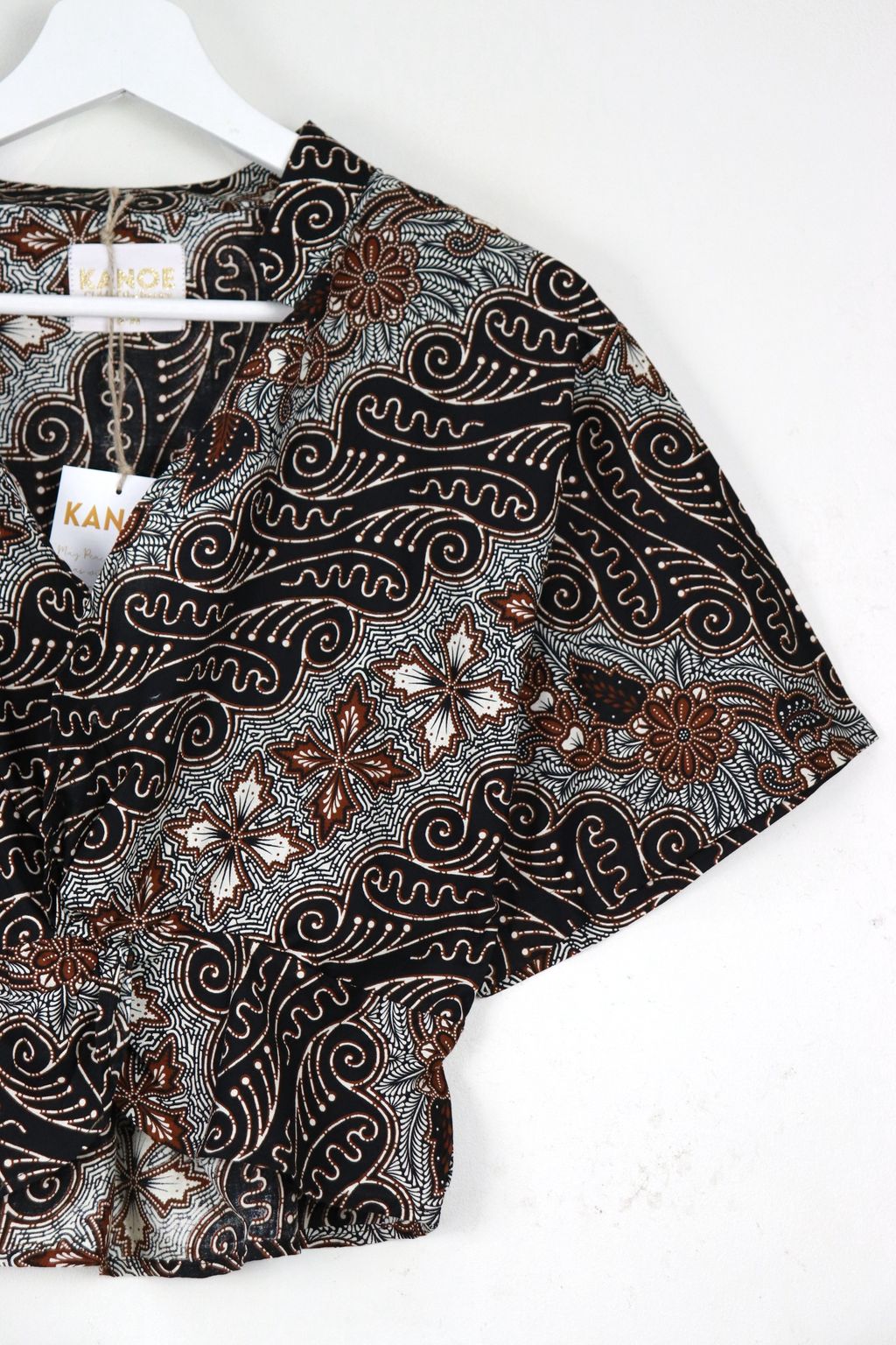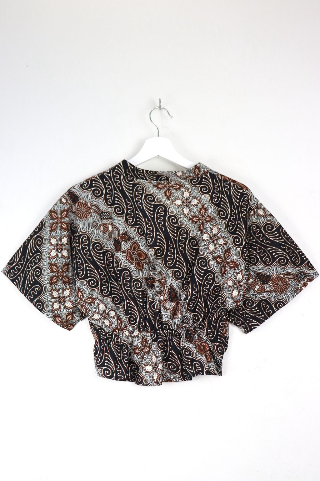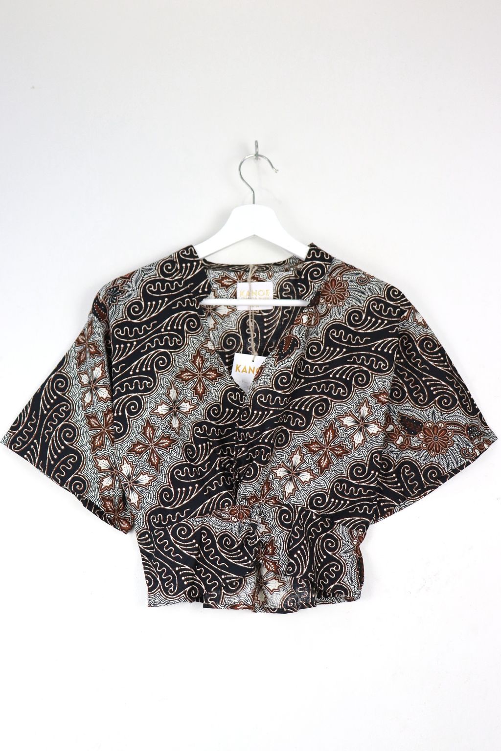 Featuring a mandarin collar and a twisted front, perfect for casual or formal wear.