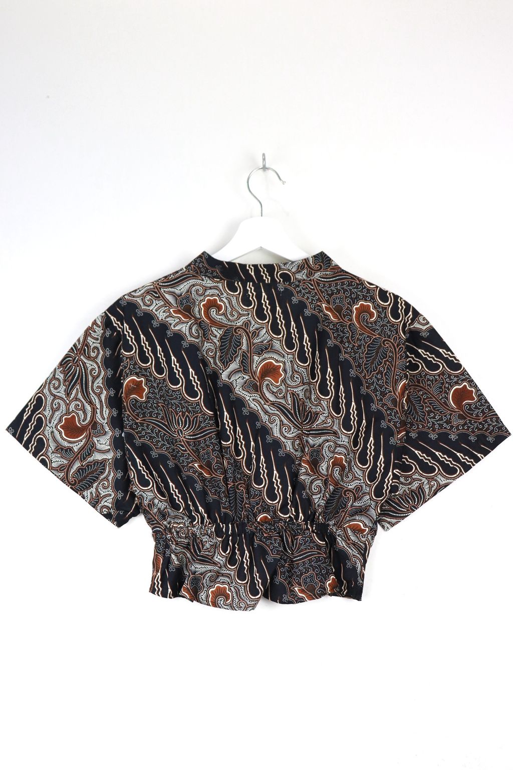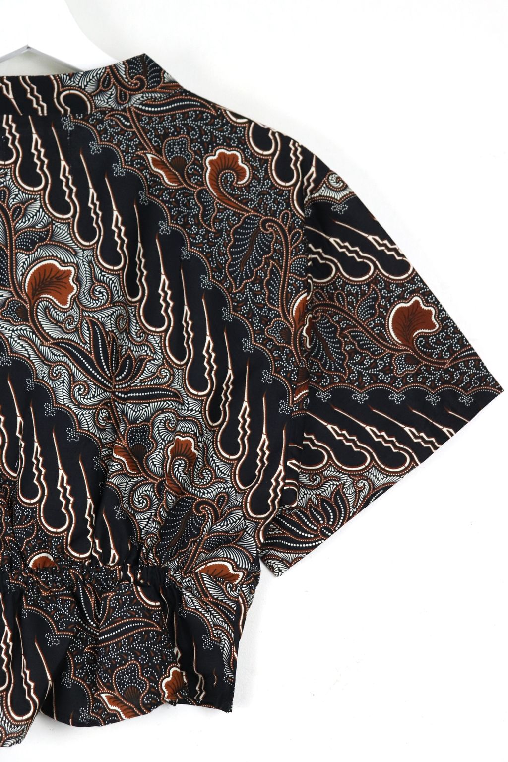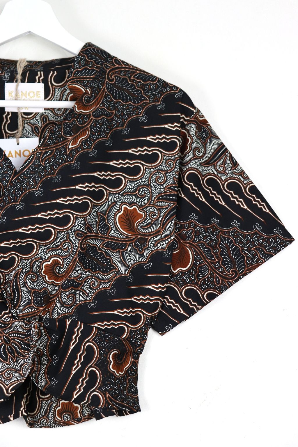 Featuring a mandarin collar and a twisted front, perfect for casual or formal wear.