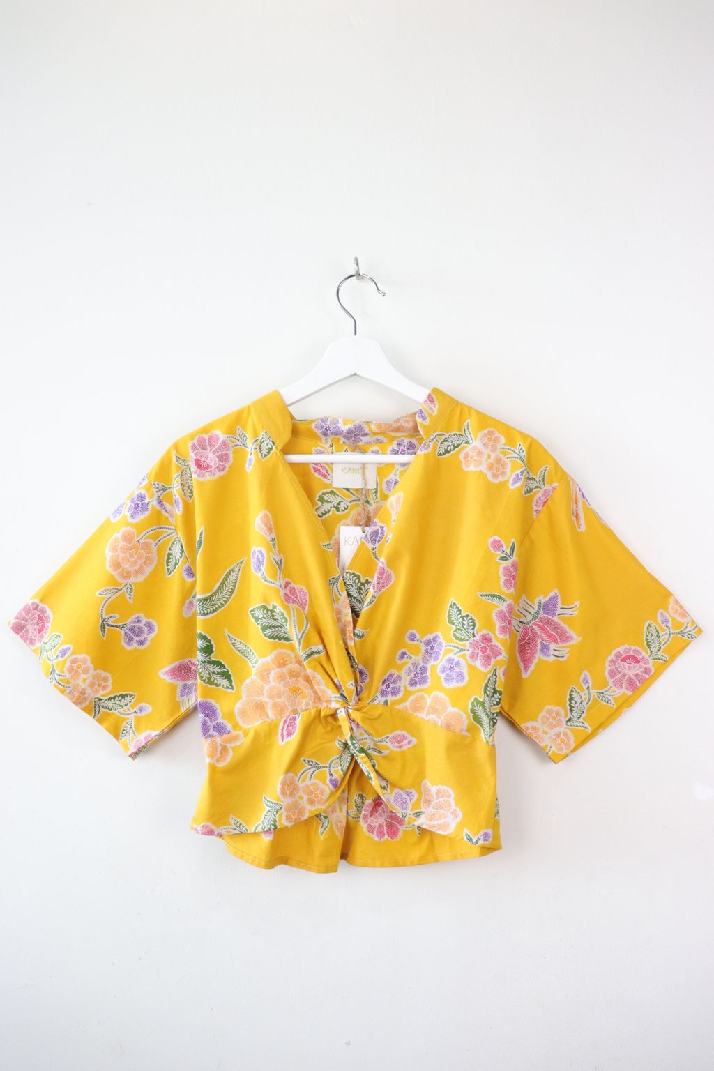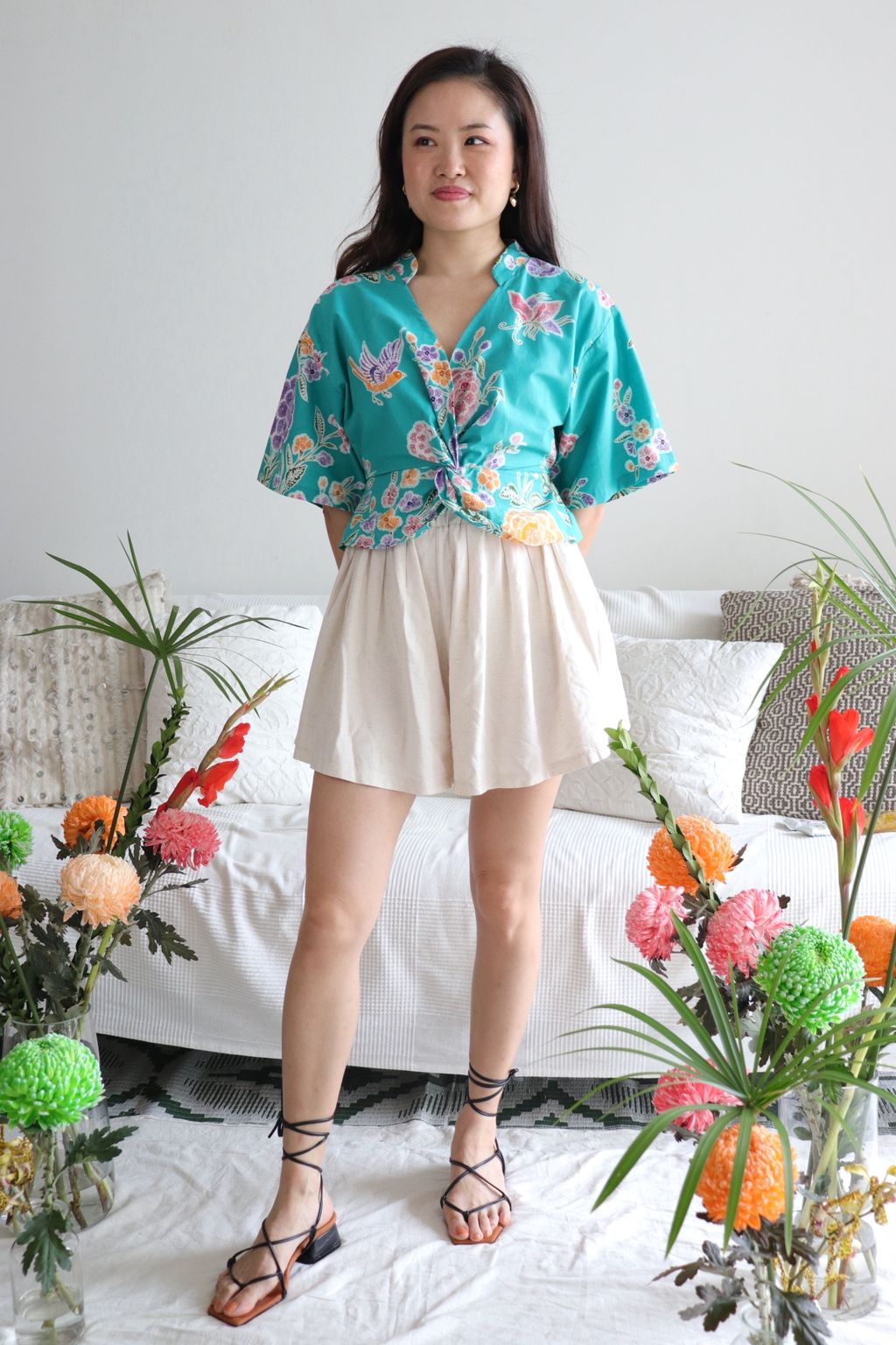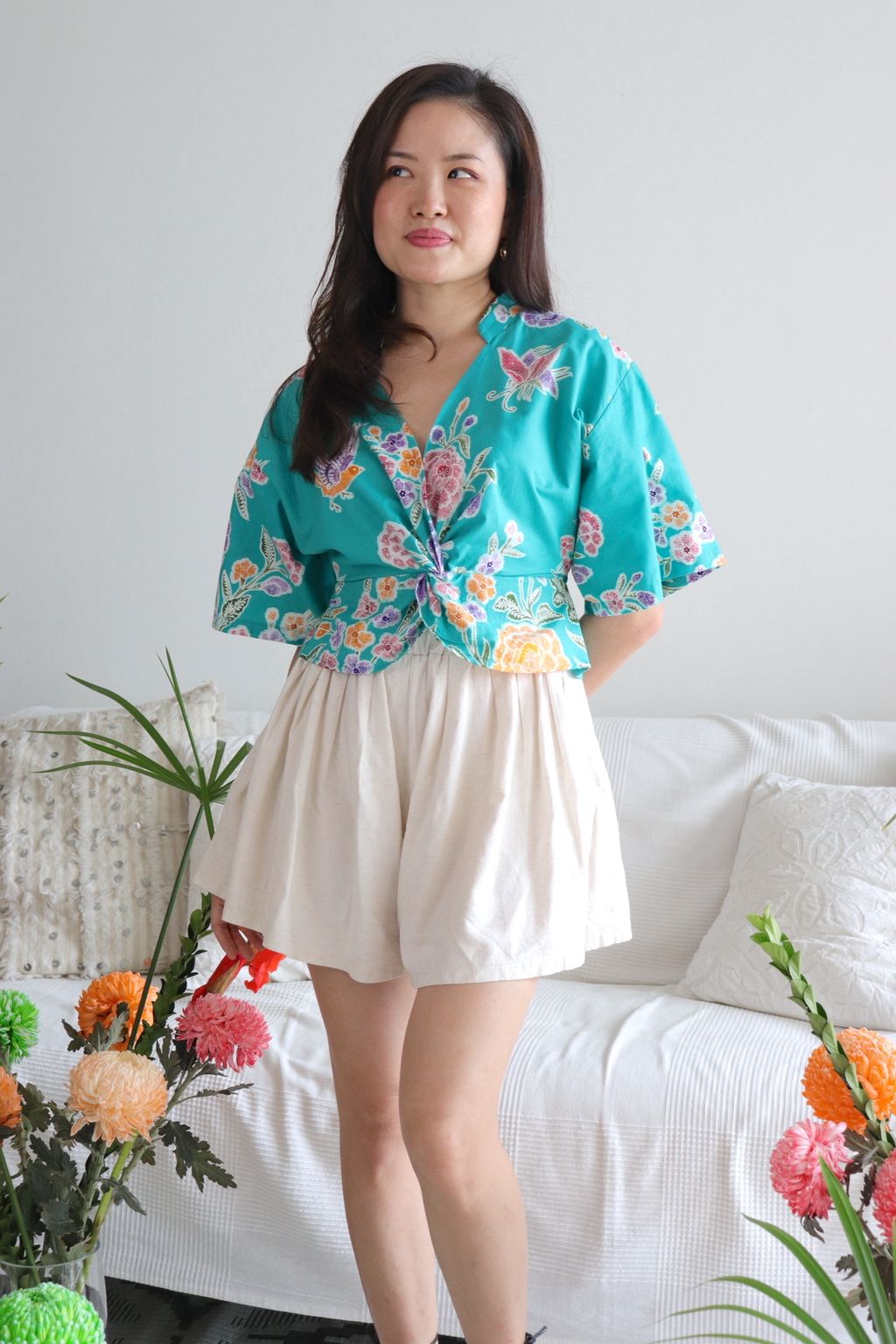 Twisted Front Mandarin Top - Butter Bean [ Handmade Batik ]
