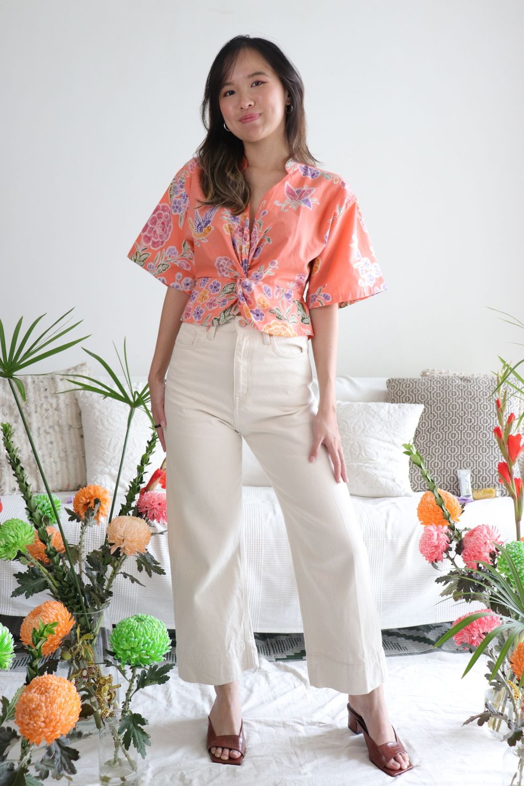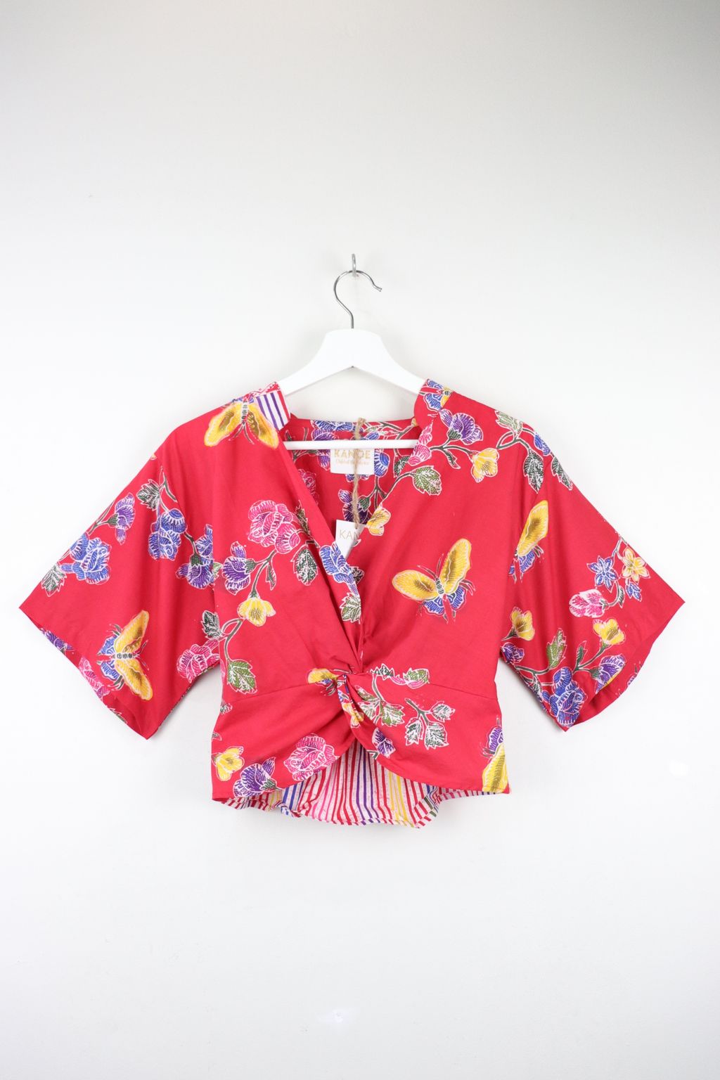 Twisted Front Mandarin Top - Butterfly Flower [ Handmade Batik ]