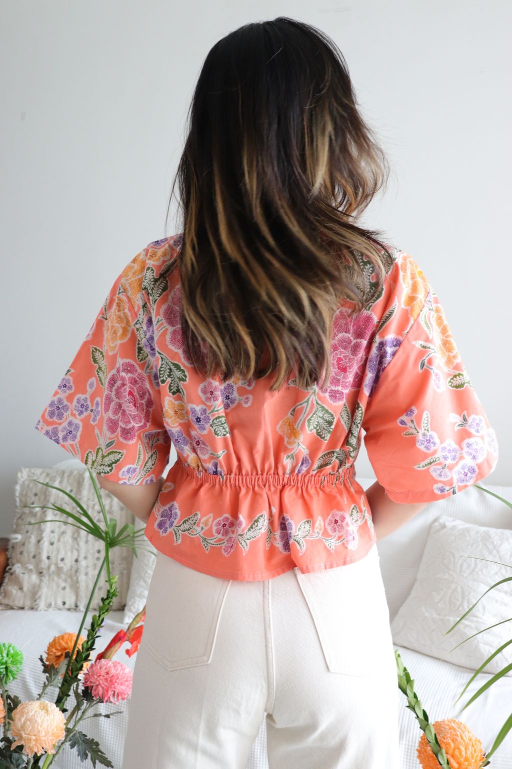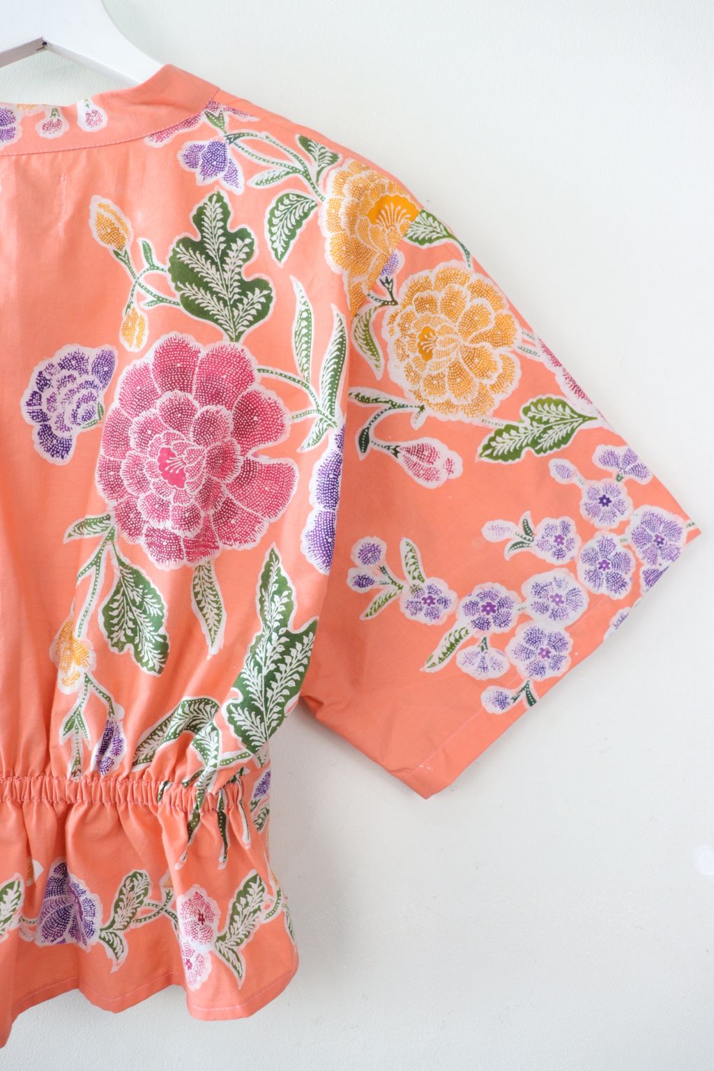 Twisted Front Mandarin Top - Peachy Flow [ Handmade Batik ]
