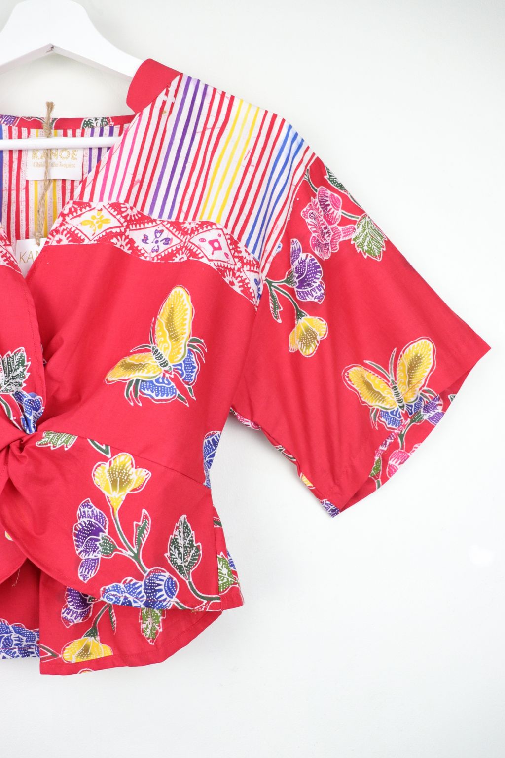 Twisted Front Mandarin Top - Rainbow Sorbet [ Handmade Batik ]