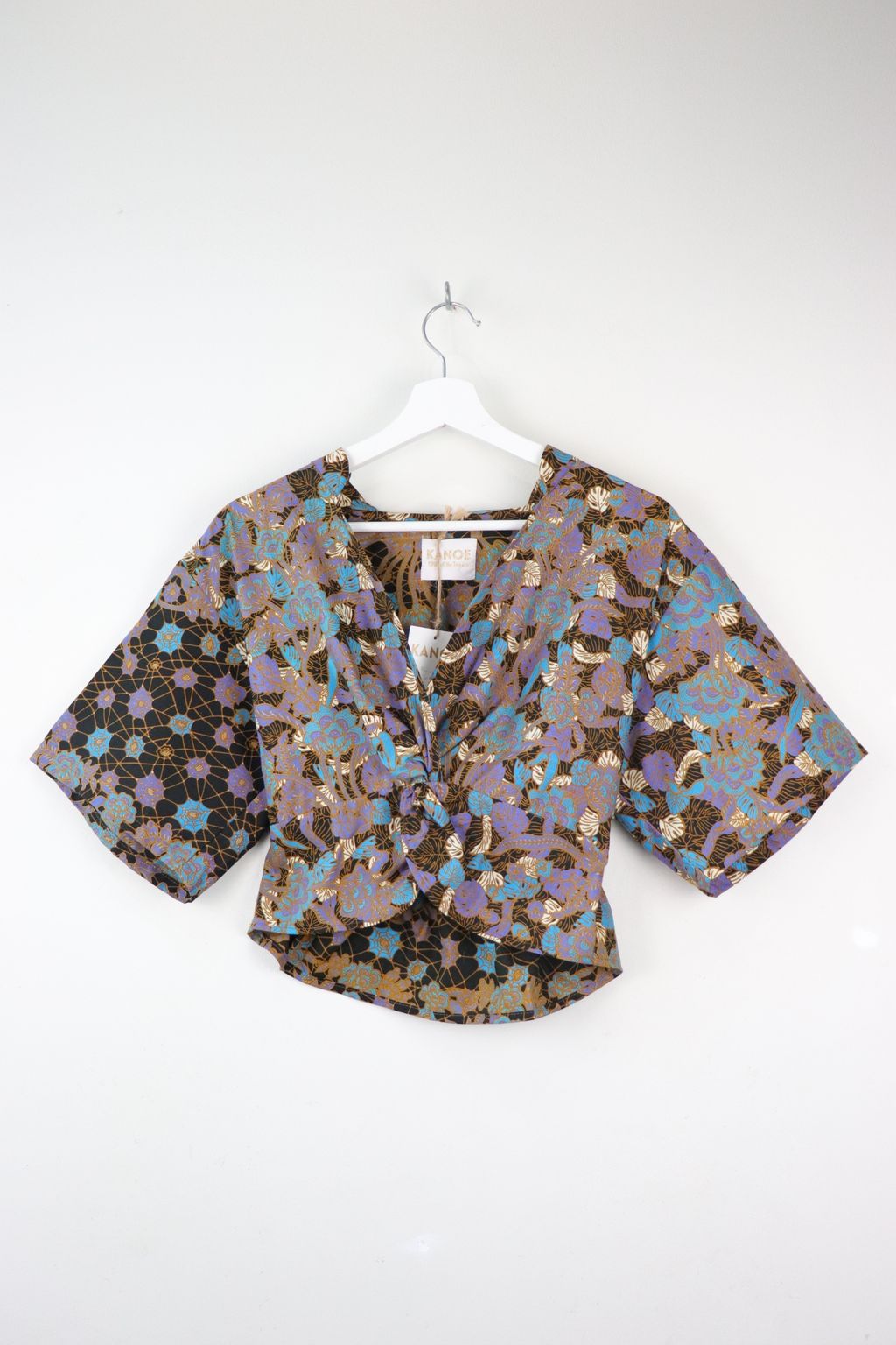 Featuring a mandarin collar and a twisted front, perfectly versatile.