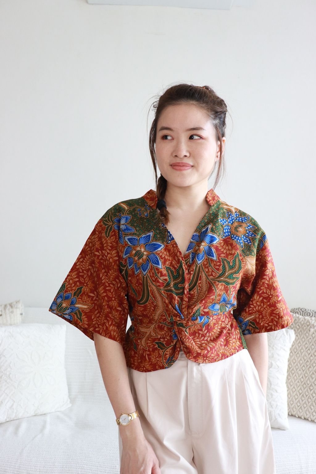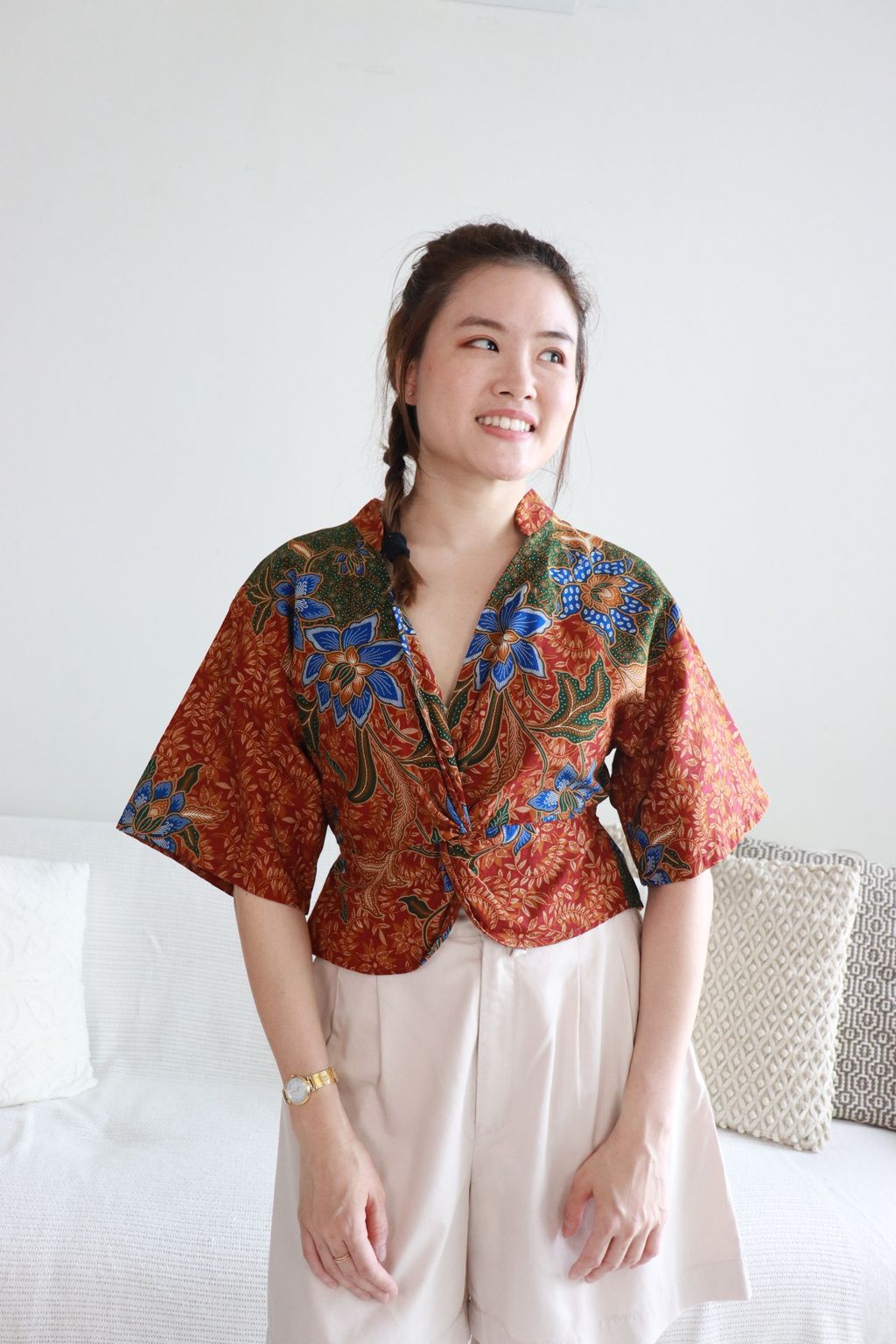 Featuring a mandarin collar and a twisted front, perfectly versatile.