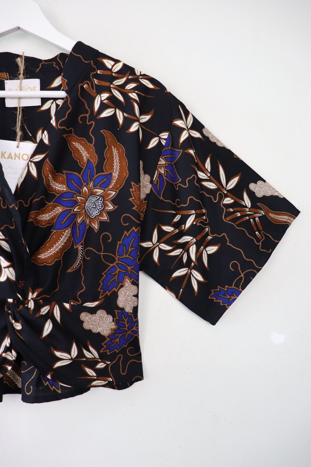 Featuring a mandarin collar and a twisted front, perfect for casual or formal wear.