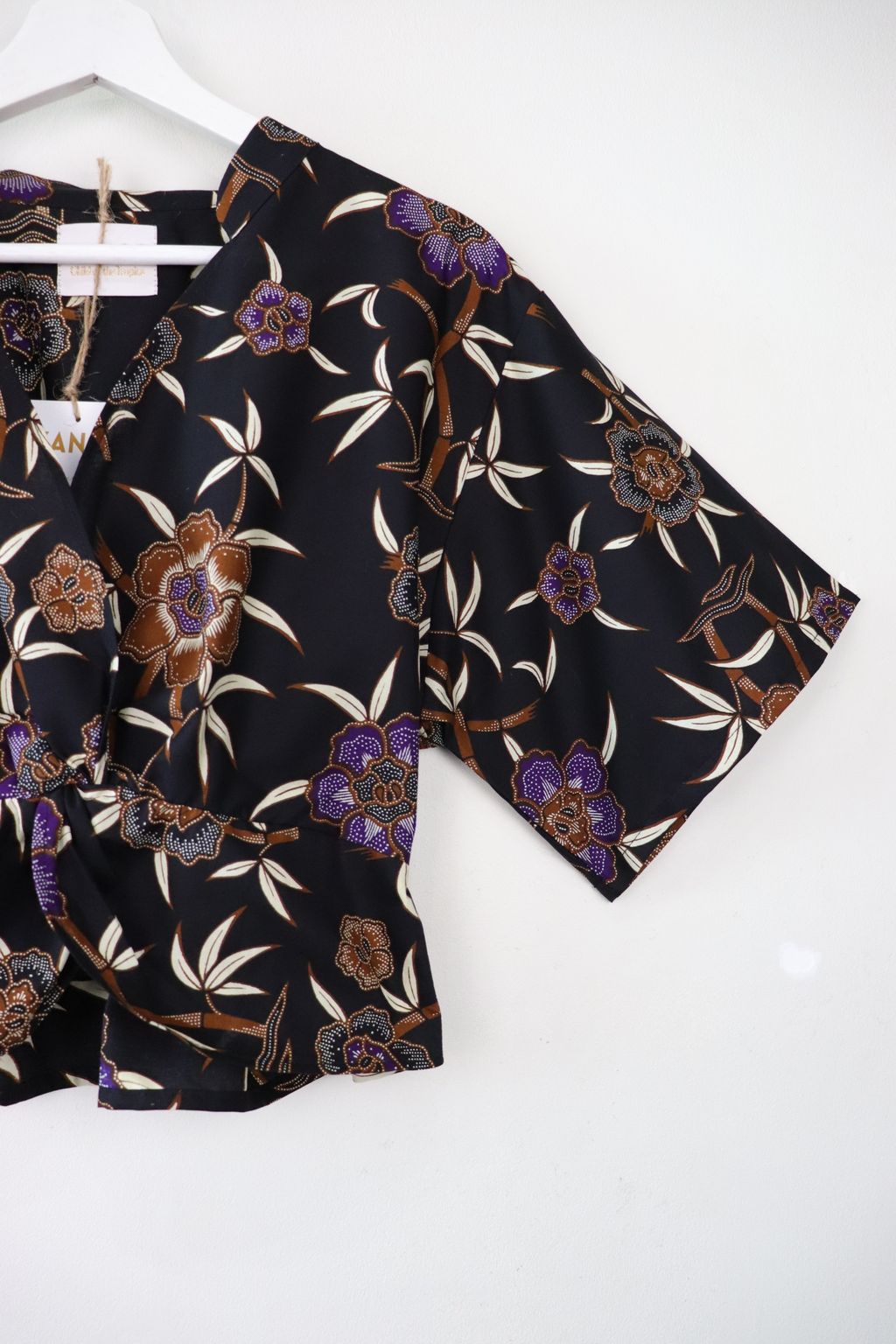Featuring a mandarin collar and a twisted front, perfect for casual or formal wear.