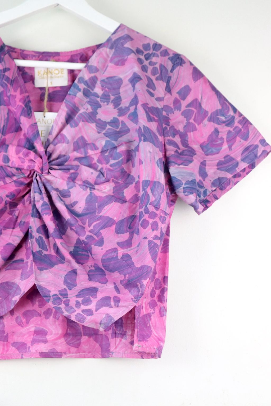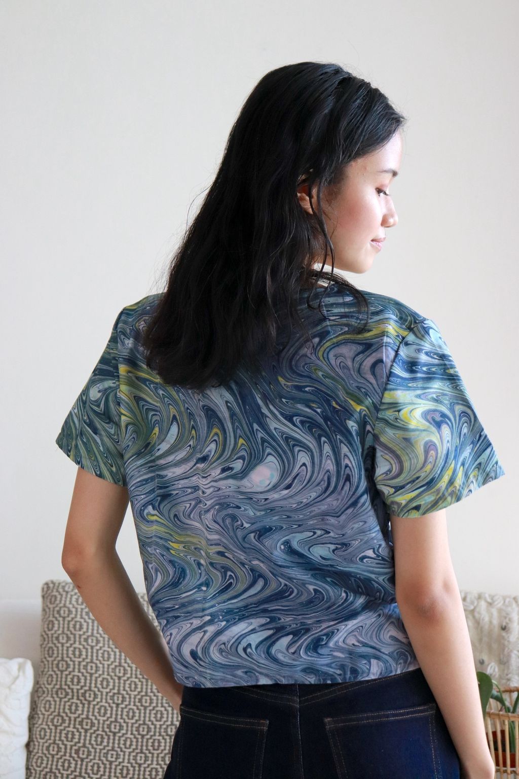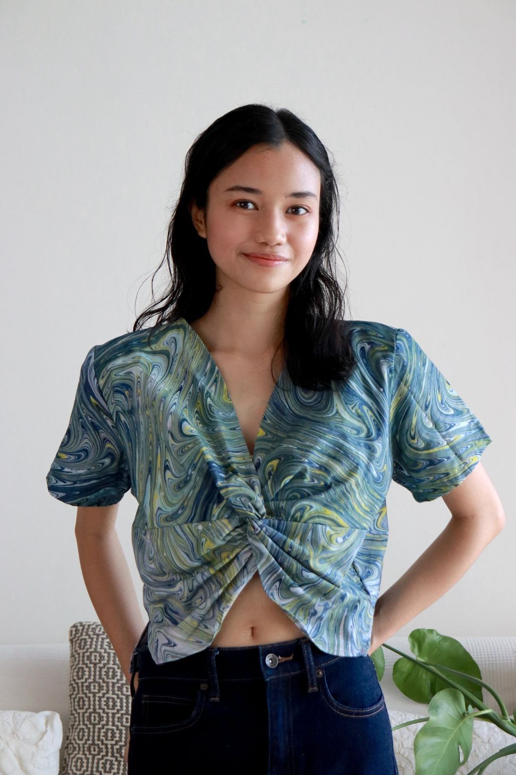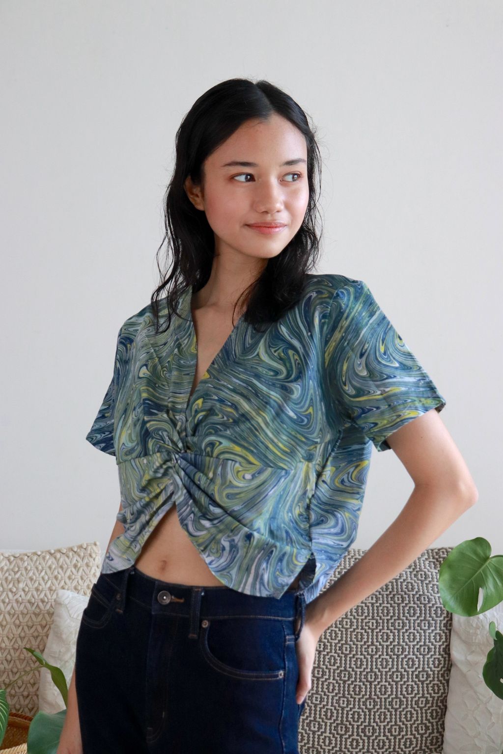 These Twisted Front Tops are made of Hand Marbled Batik by local Malaysian artisans. They are a fresh twirl of shades made of 100% cotton batik.