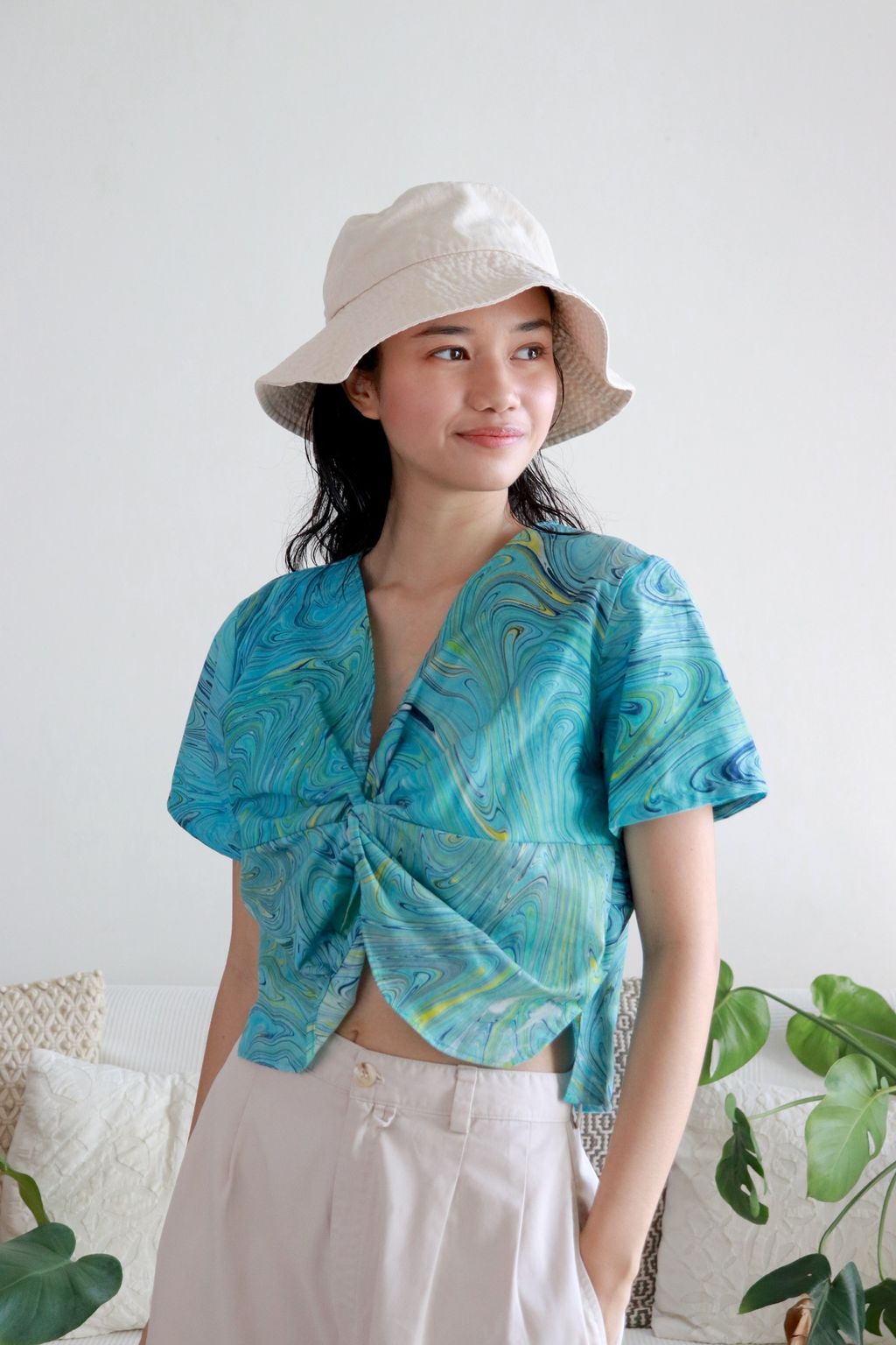 These Twisted Front Tops are made of Hand Marbled Batik by local Malaysian artisans. They are a fresh twirl of shades made of 100% cotton batik.