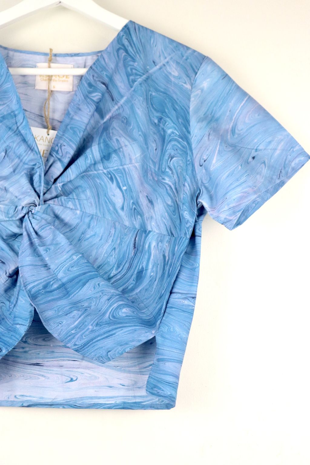 Twisted Front Top w/ Side Slits - Sea Splash [ HandMarbled ]