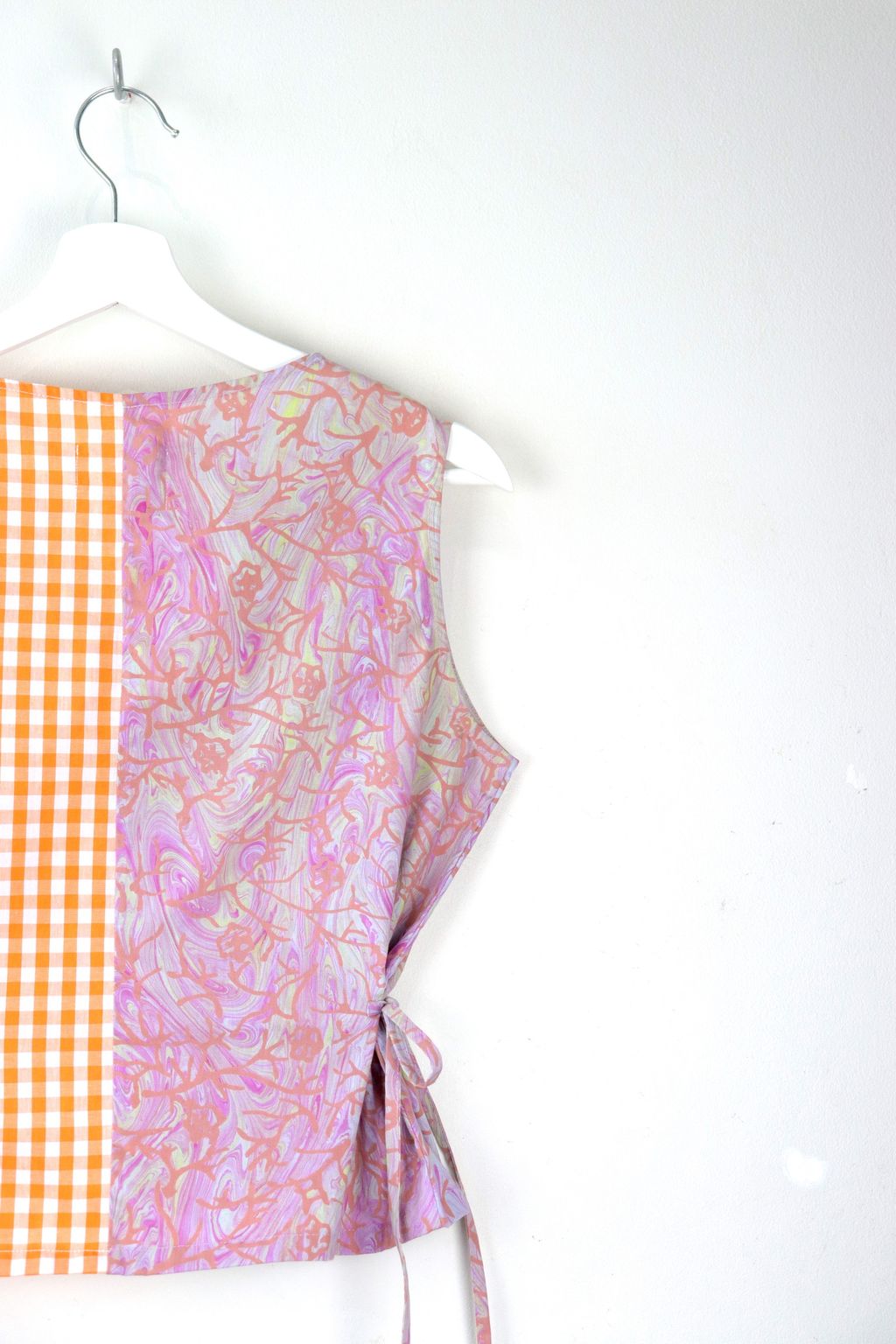 If you like a fun mix in pattern, prints and colors... Check out our Limited Edition Triple Tie Front Vest!