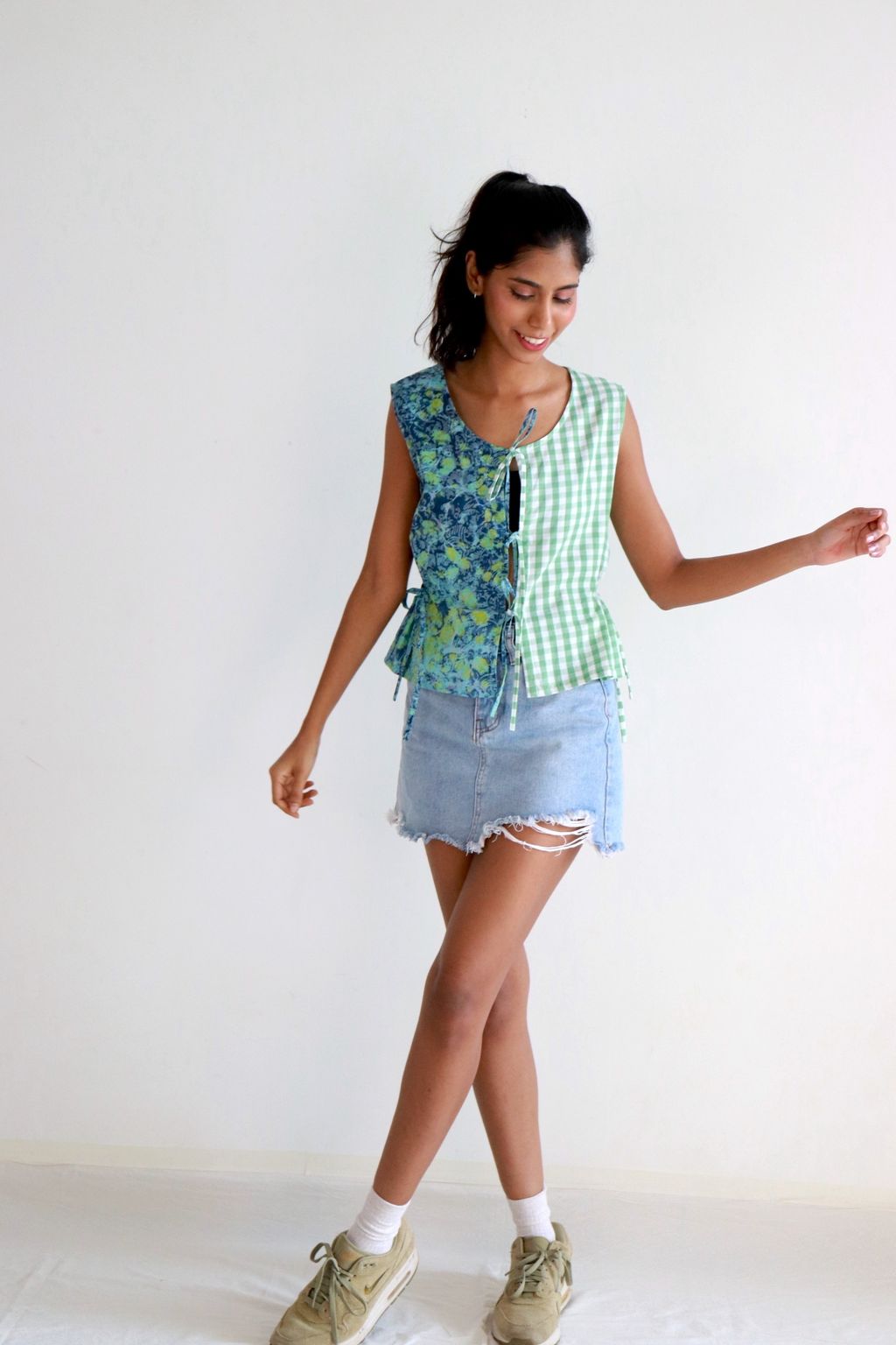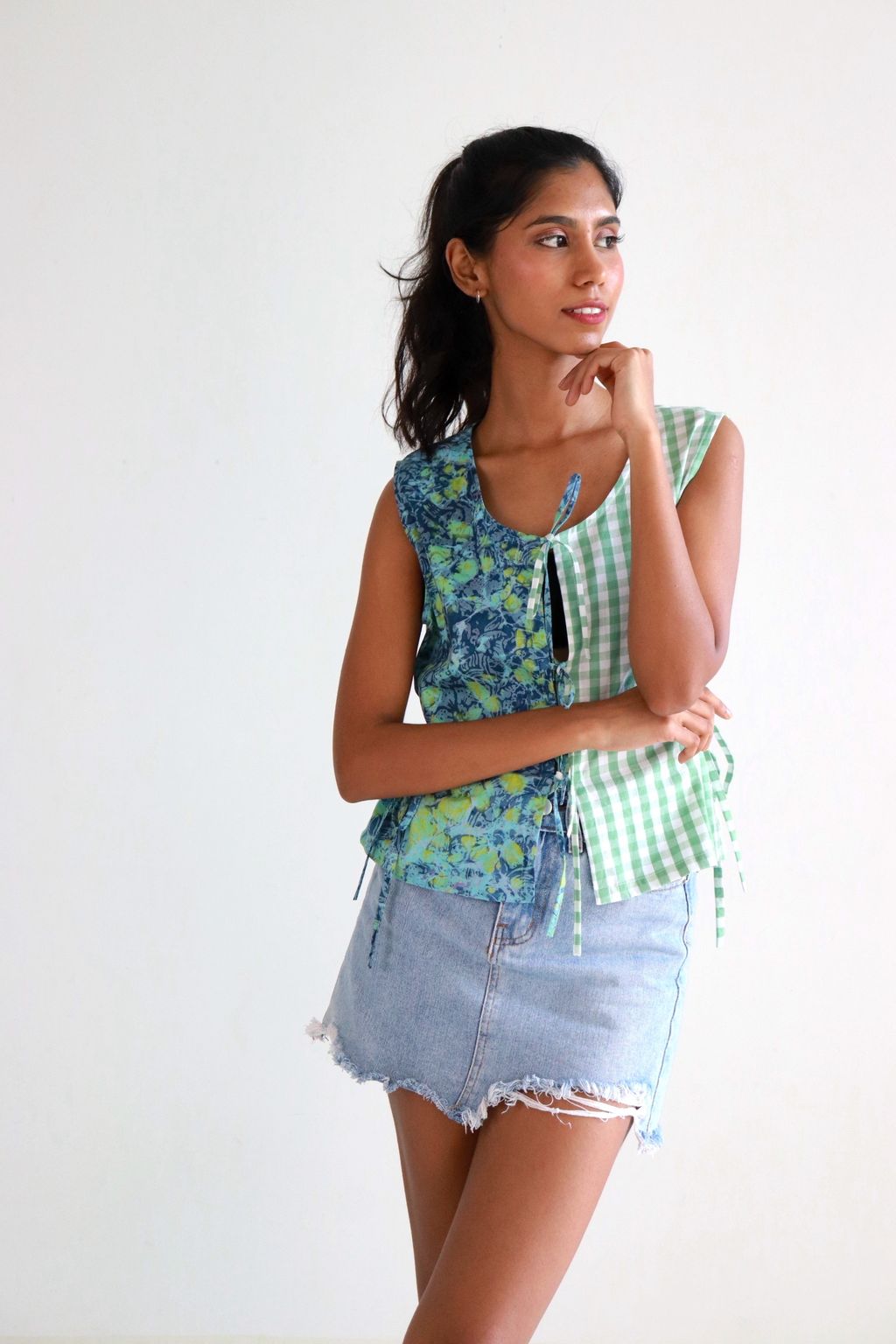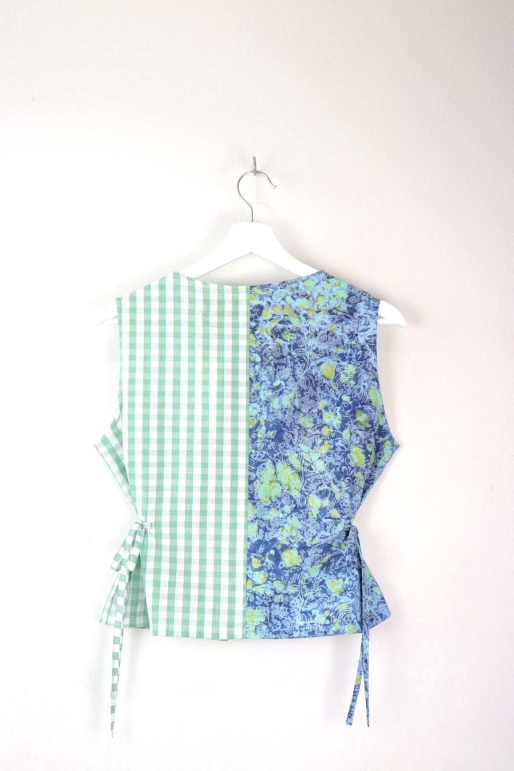 If you like a fun mix in pattern, prints and colors... Check out our Limited Edition Triple Front Tie Vest!