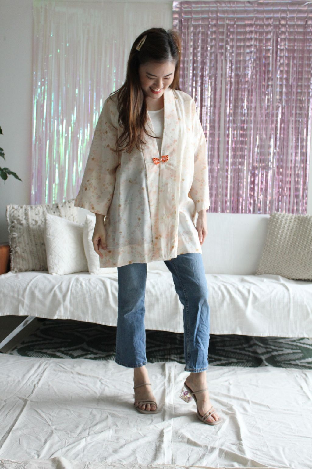 Beautiful to wear over a simple white tee and denim!  Unique one off pieces made from Vintage Kimono from Japan. This is the art of repurposing the old to make it new again. Transformed minimally to bring out its beauty in its truest form so that is wearable for today's everyday girl ! <3