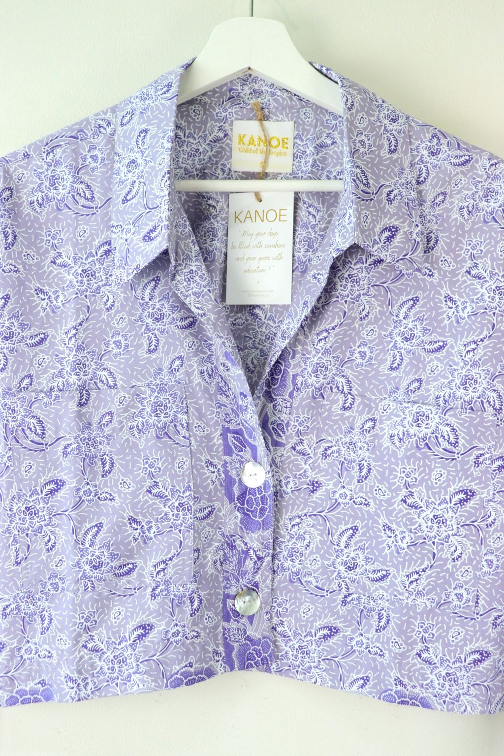 Effortless and chic, this Utilitarian Cropped Batik Shirt comes with a sharp Stiff Collar adding to the Sophisticated Dapper look, with functional Pockets and au naturale Mother of Pearl buttons down the front that speaks the understated Elegance of today.