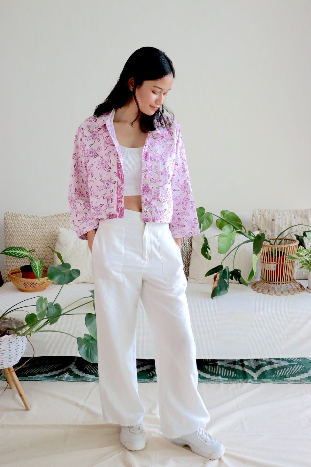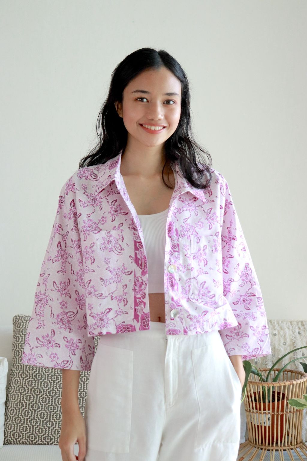Utilitarian Cropped Batik Shirt - Lilac Breeze
