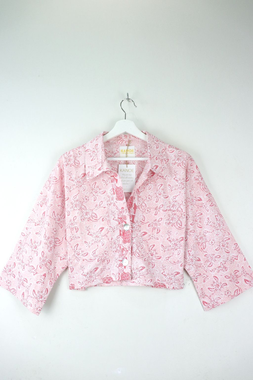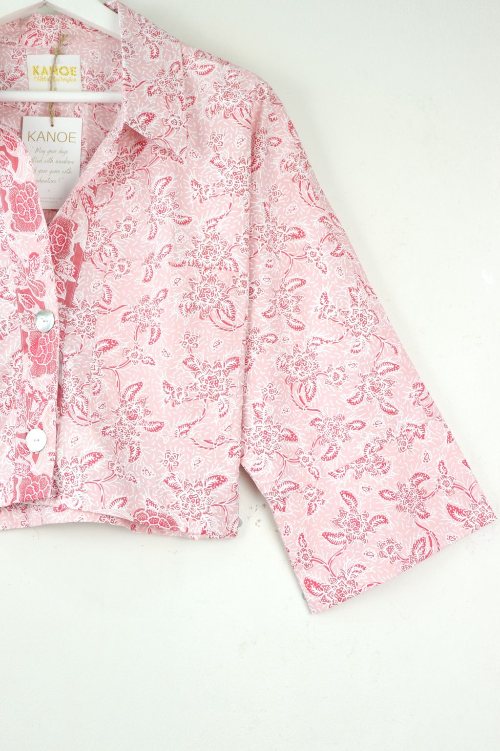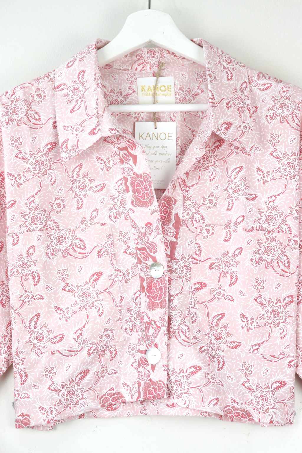 Utilitarian Cropped Batik Shirt - Strawberries and Cream