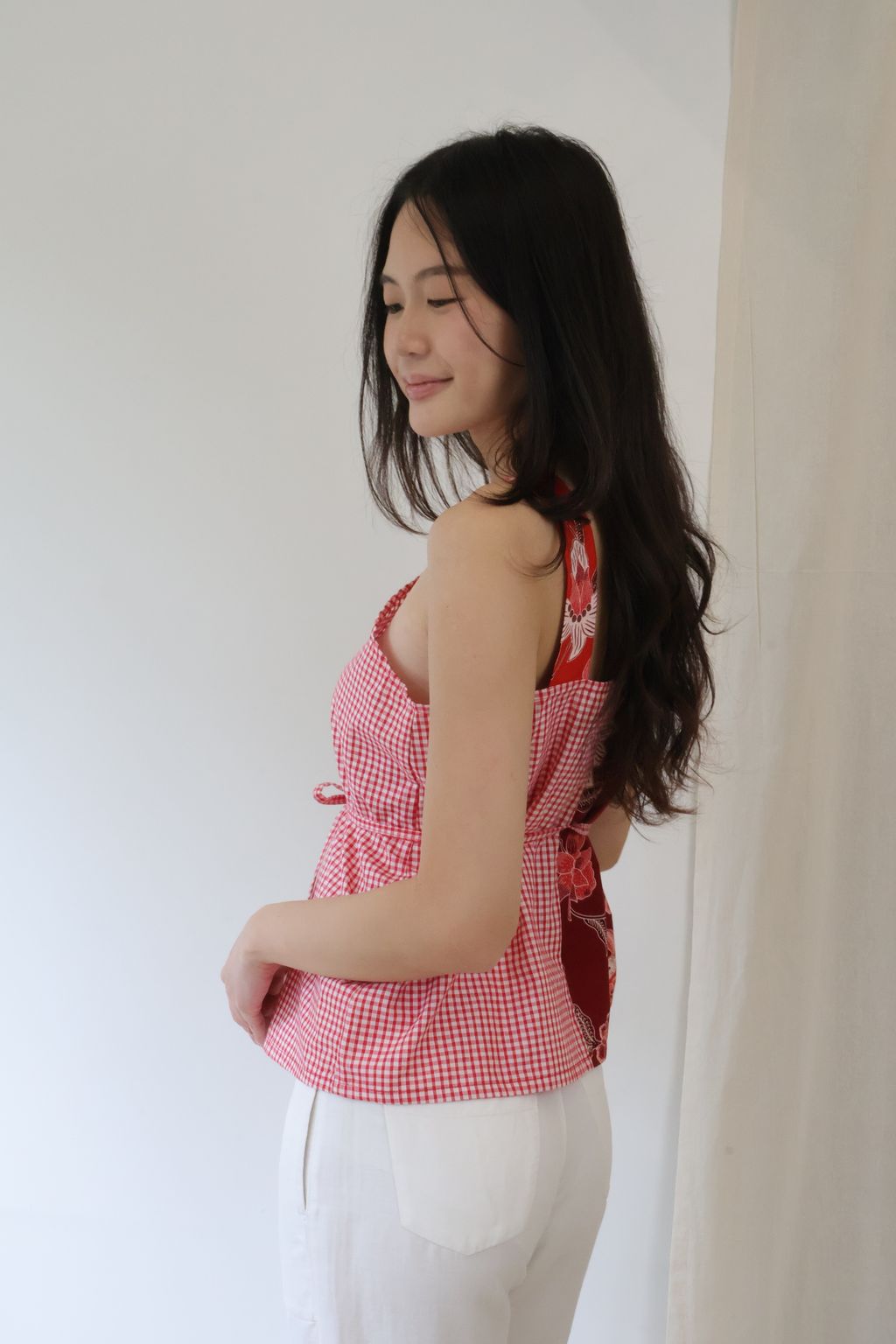 * The waist tie lets you cinch this gingham top into a perfect fit !