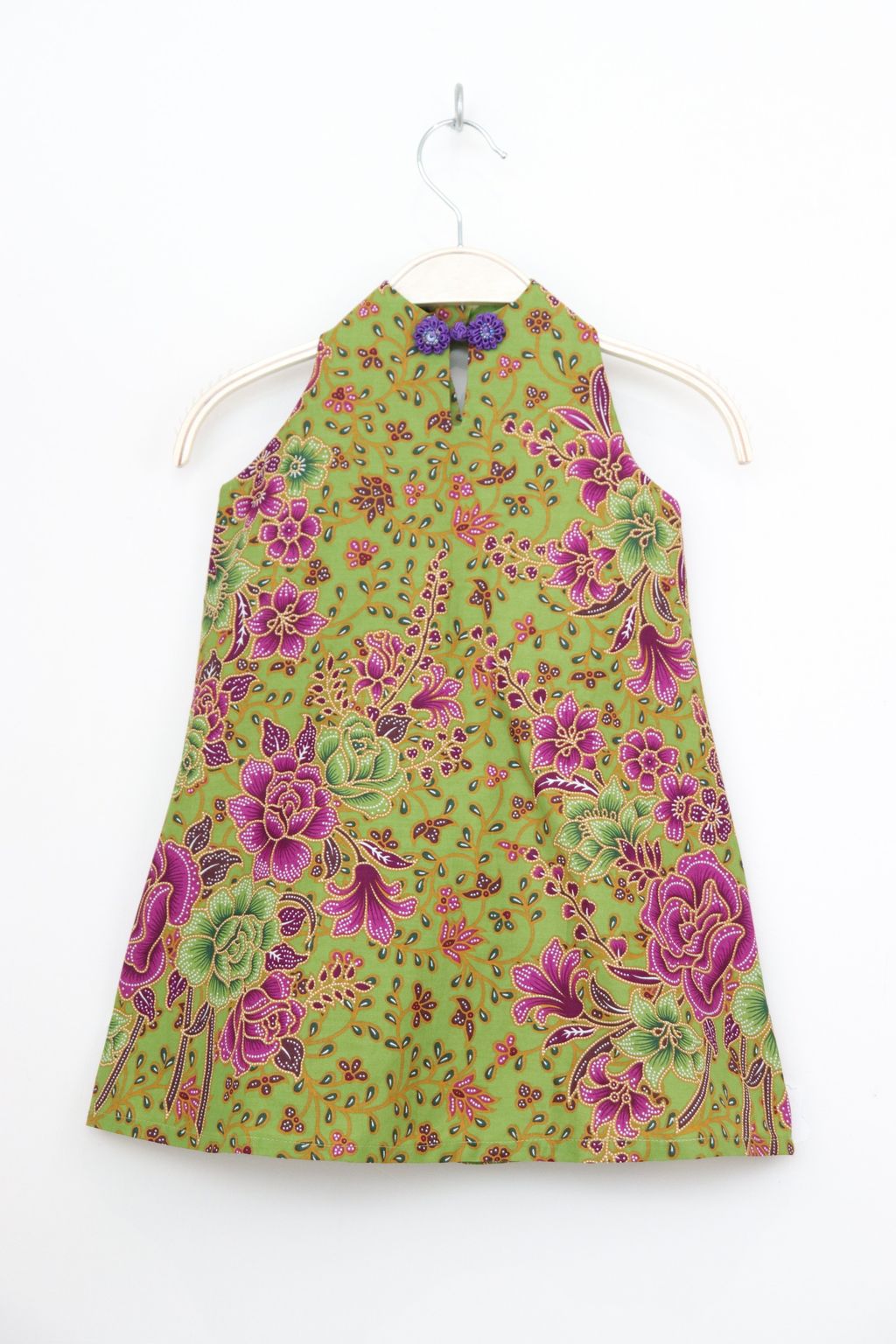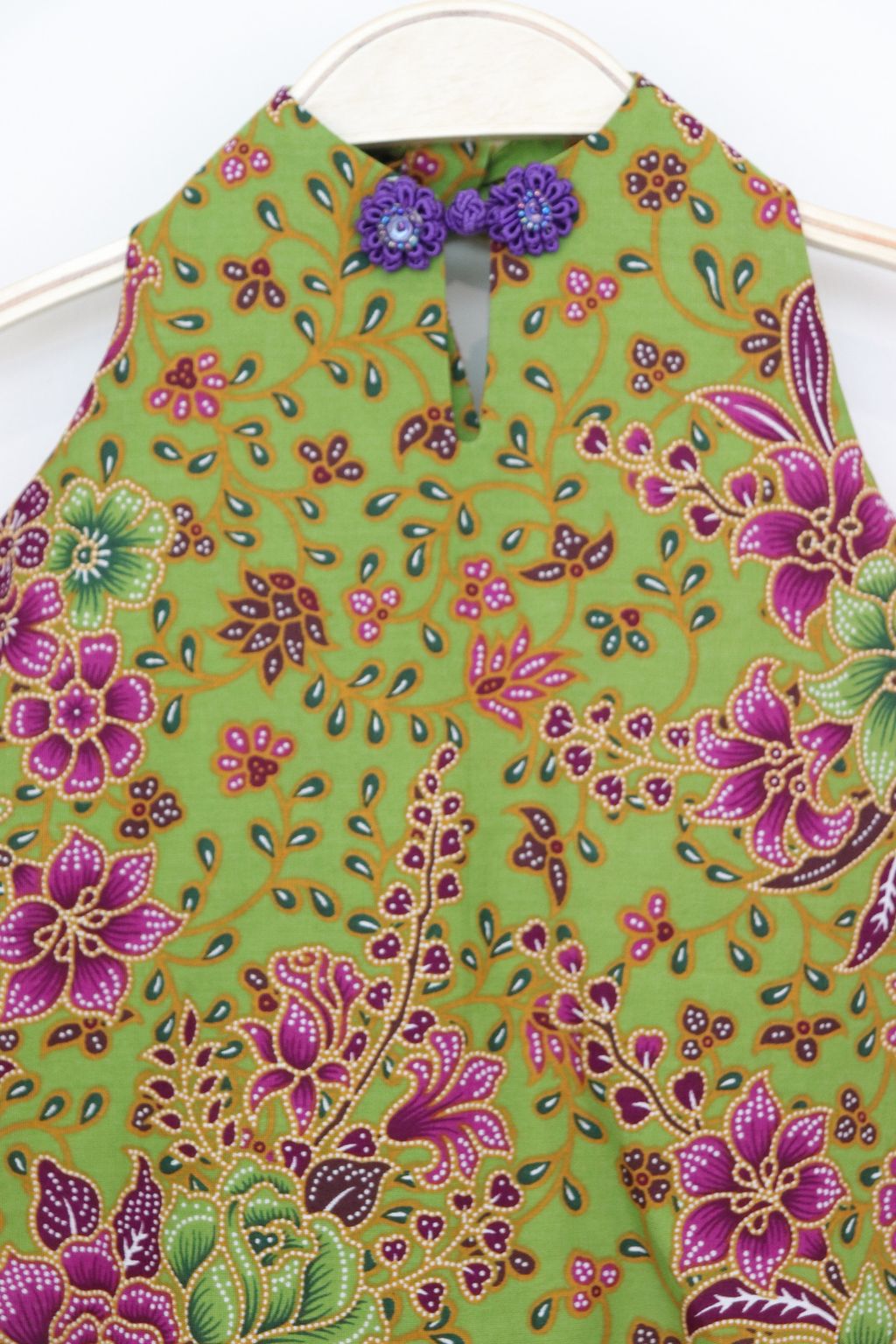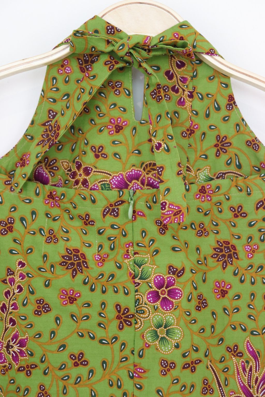 These super cute halter batik dresses feature a chinese clasp button above the keyhole cutout!
