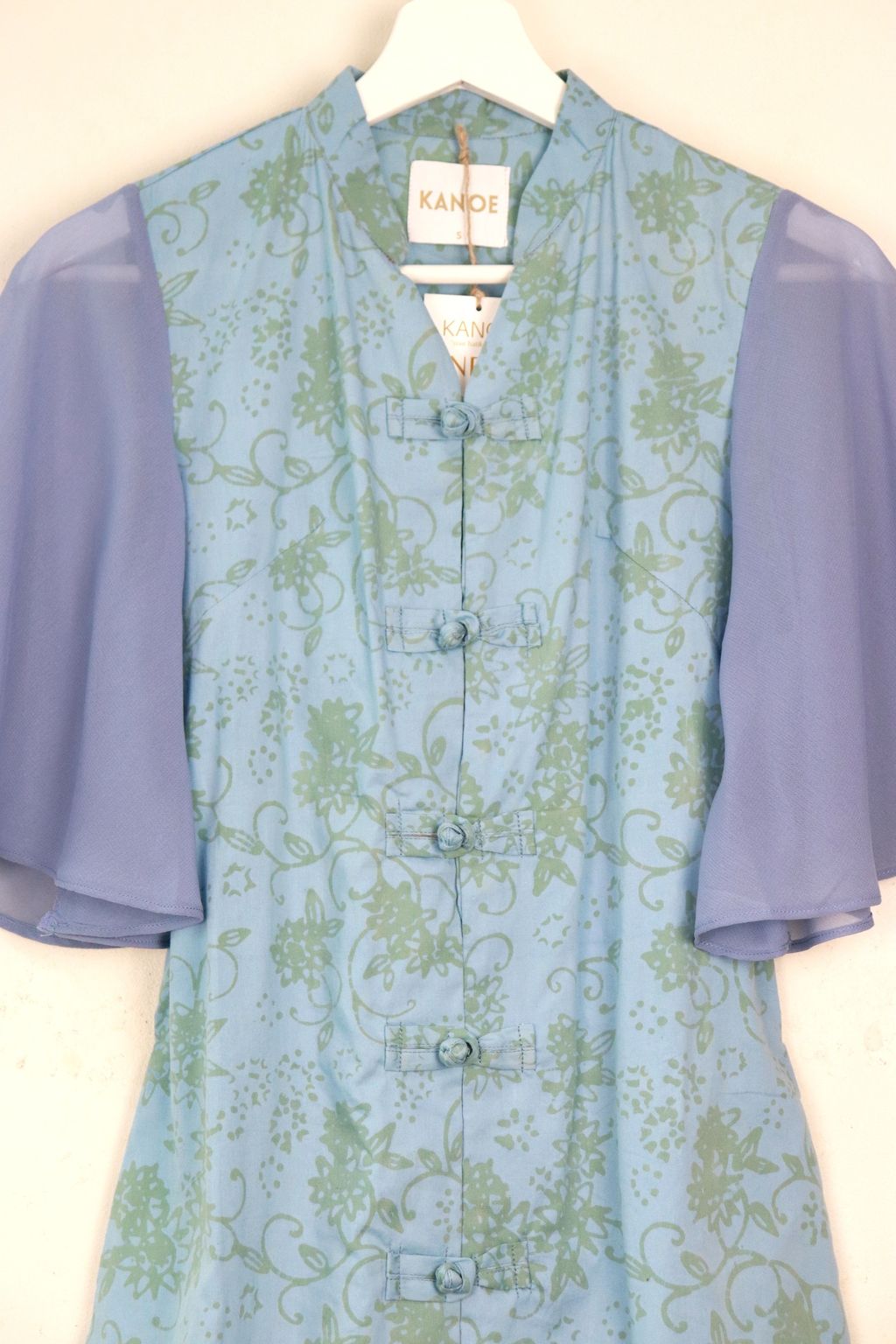 Sheer Sleeve Batik Dress - Cobalt Rain [ Handmade ]