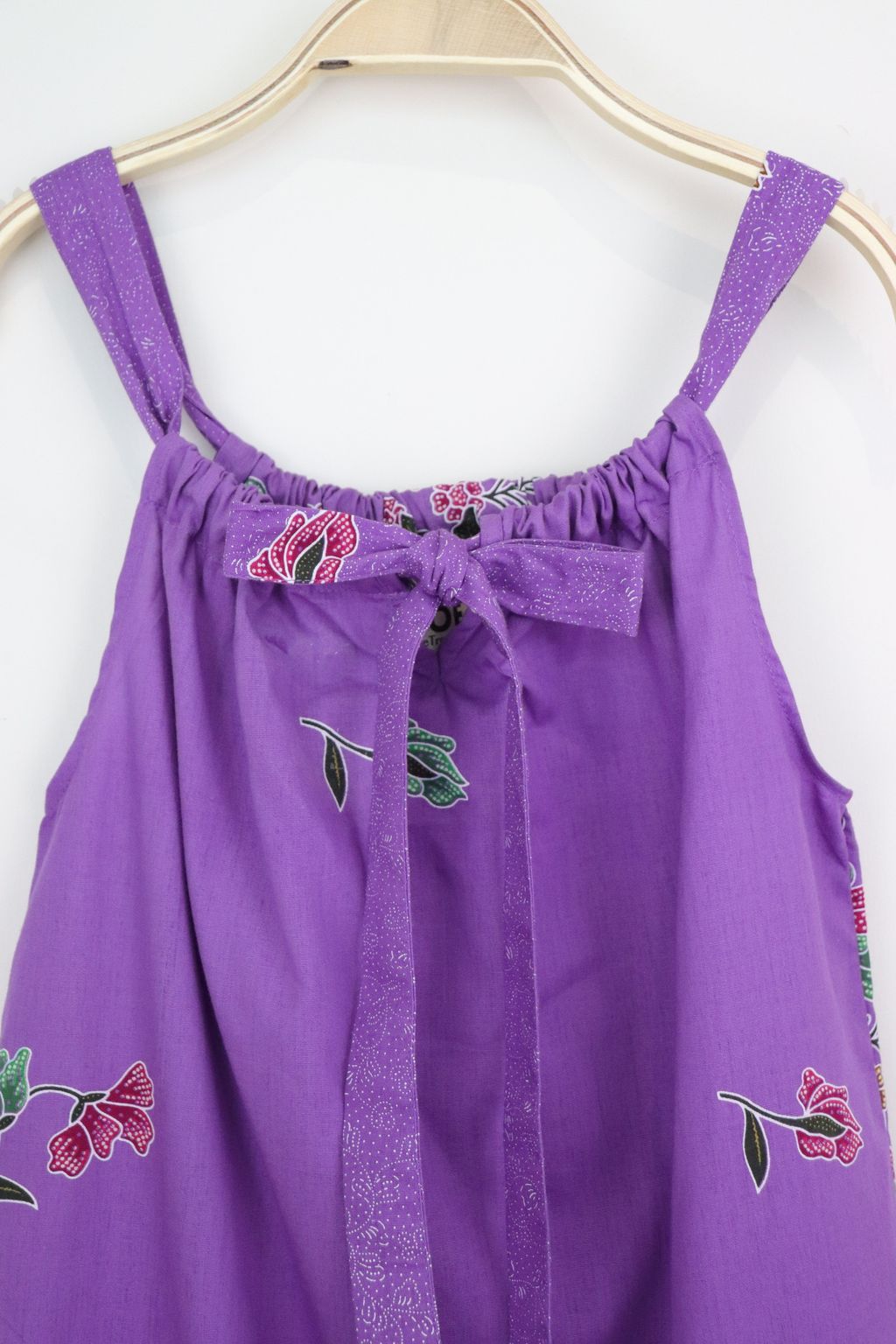 Adjustable tie straps at the front that lets you get the right fit and tie it into a cute bow.