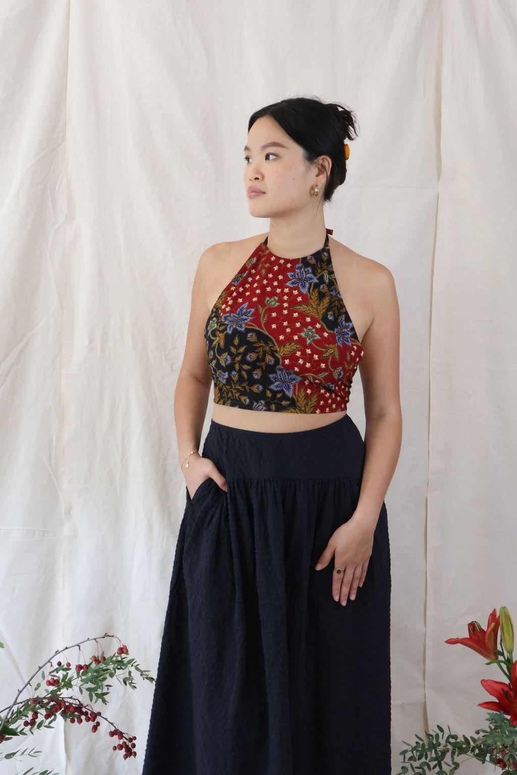 Meet our Jasmine Halter Top! A bold little piece made for summer fun. With sleek front coverage and an open back, it’s sexy yet simple. The halter neck and under-bust ties are fully adjustable, letting you wear it to your comfort and fit. π