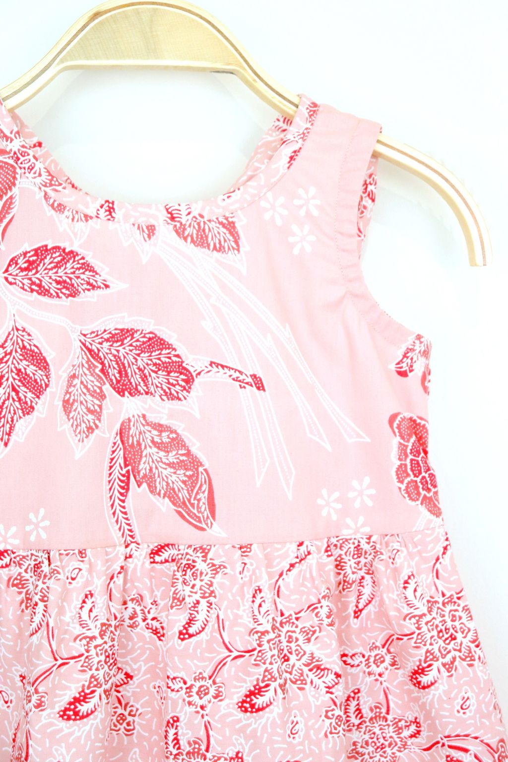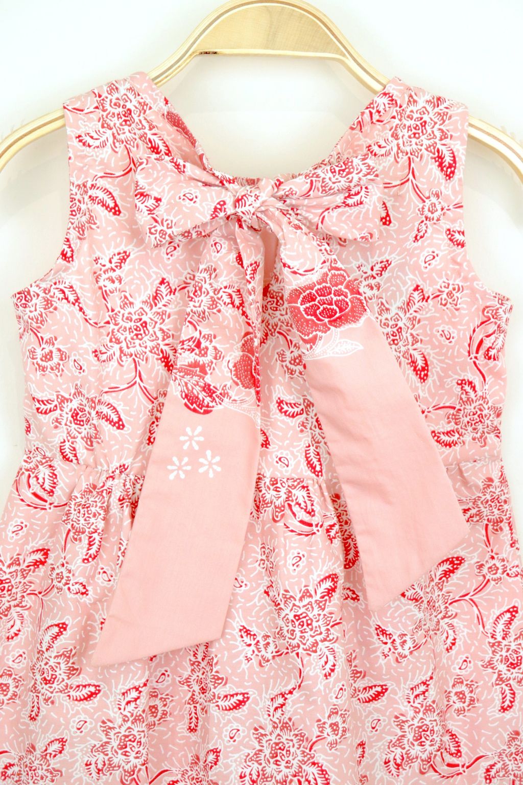 This batik dress is light, comfy, and made for all day play. With a sweet little bow tied at the back of the neck for that extra charm!