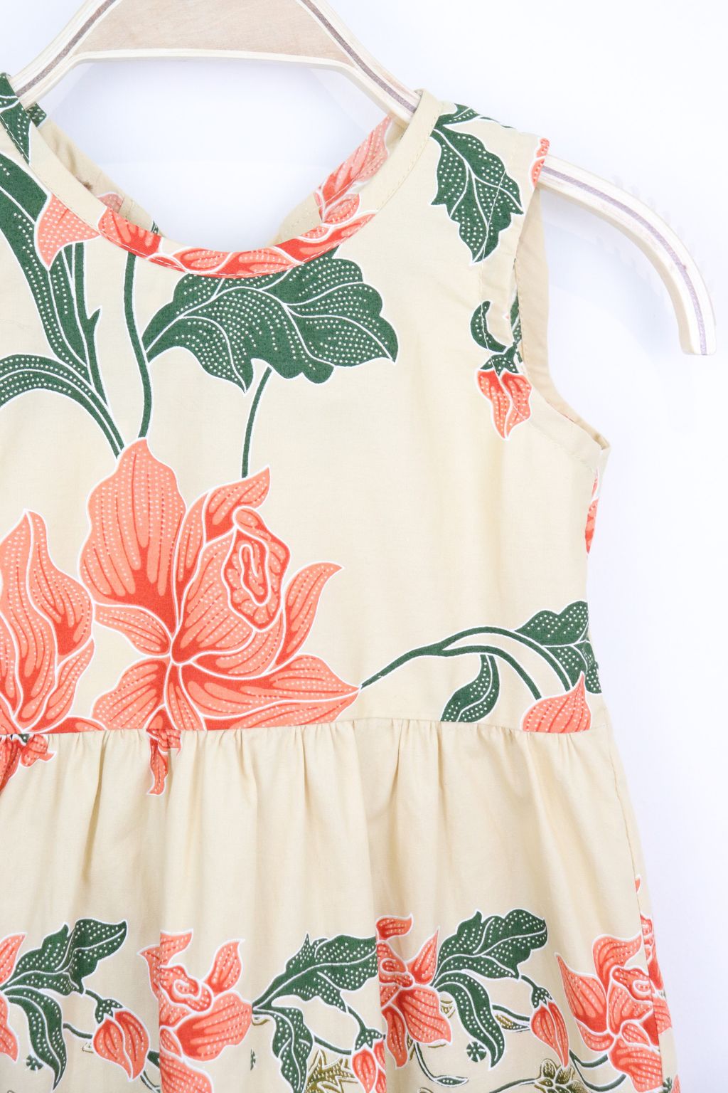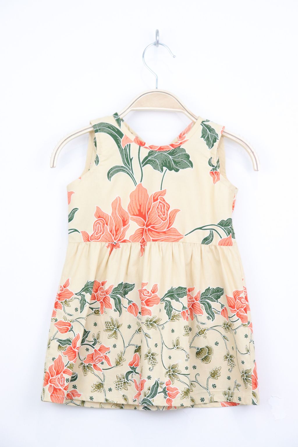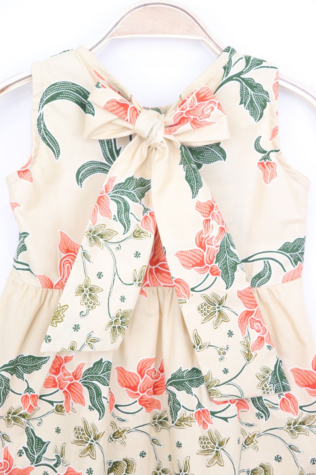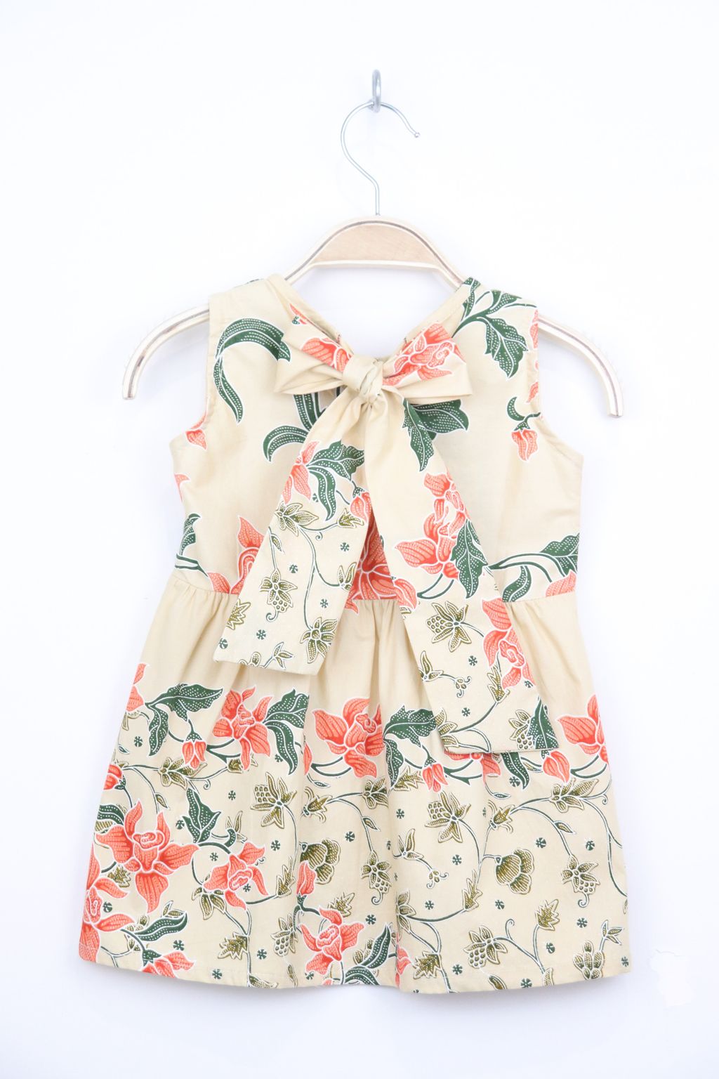 This batik dress is light, comfy, and made for all day play. With a sweet little bow tied at the back of the neck for that extra charm!
