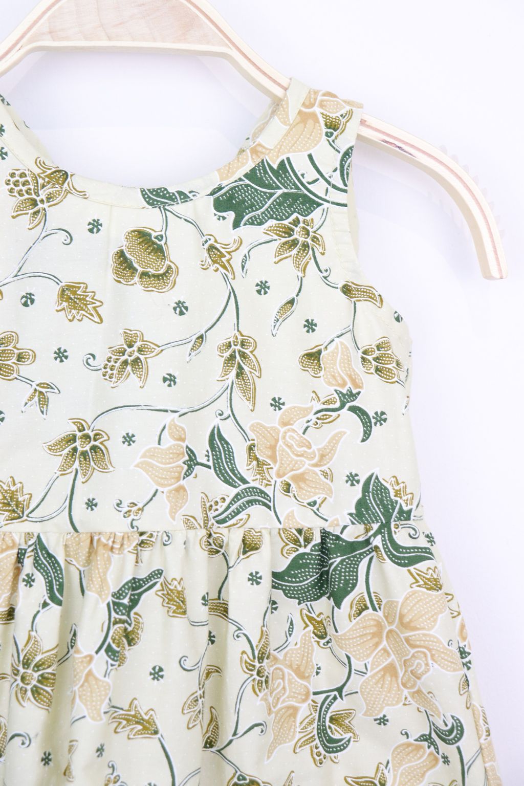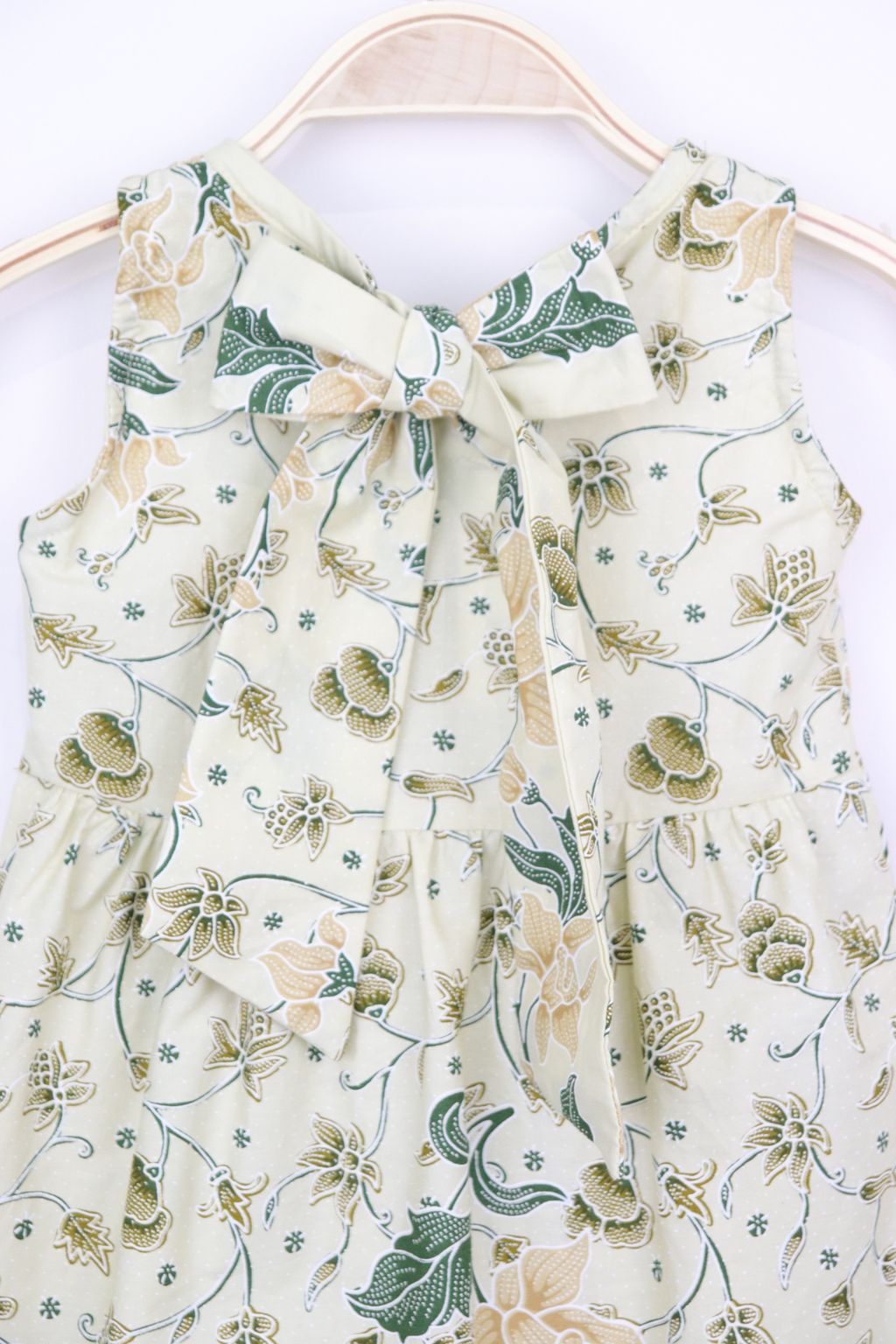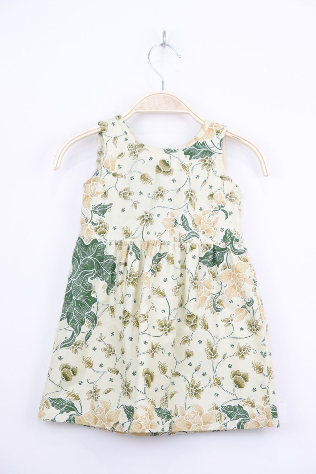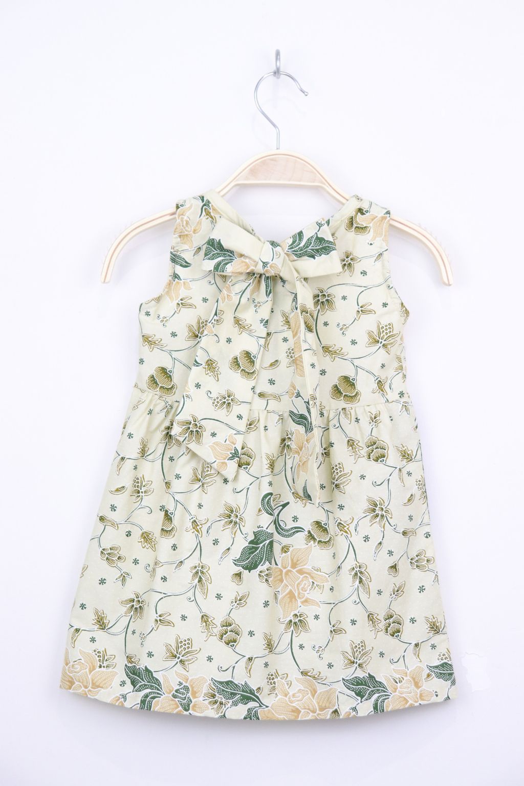 This batik dress is light, comfy, and made for all day play. With a sweet little bow tied at the back of the neck for that extra charm!