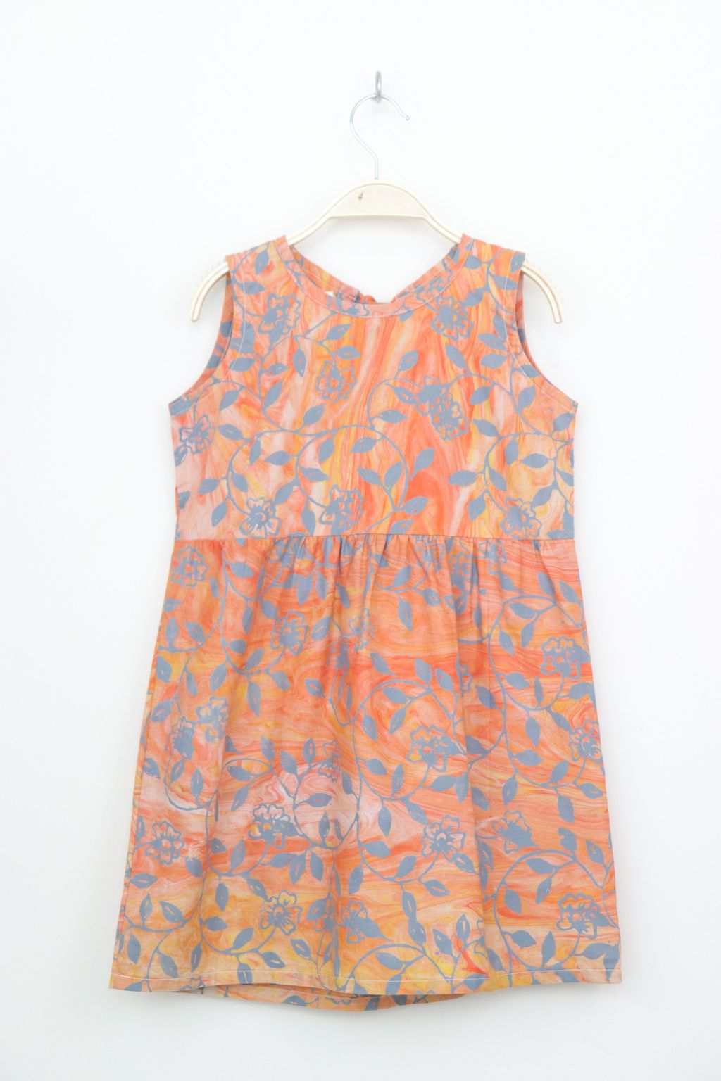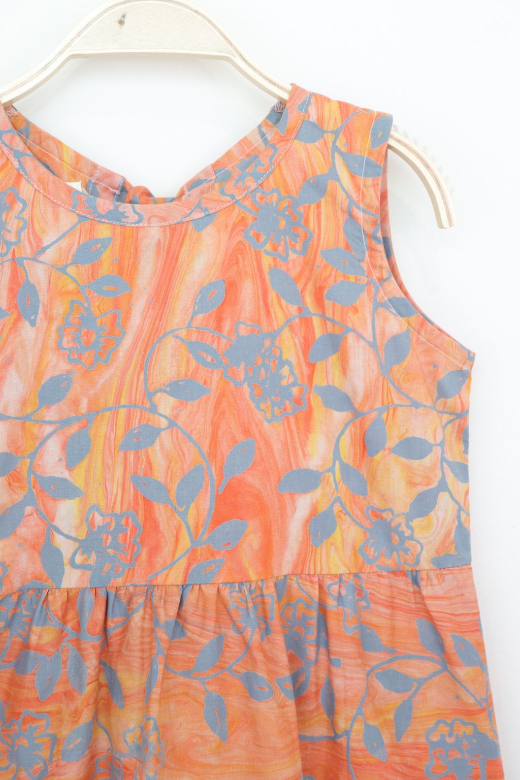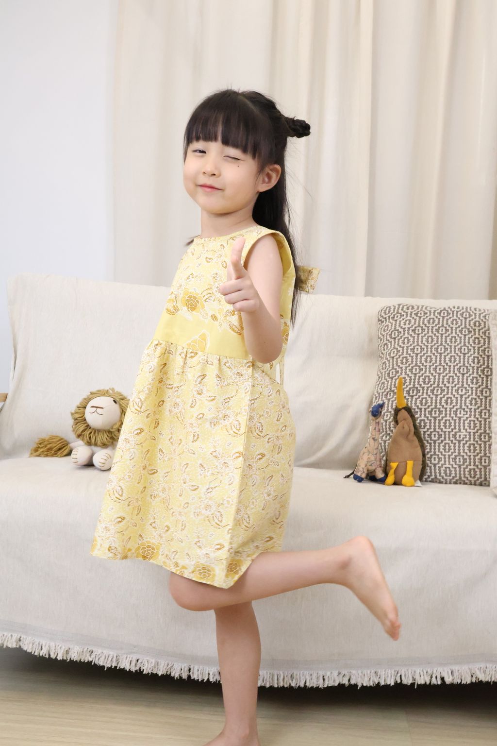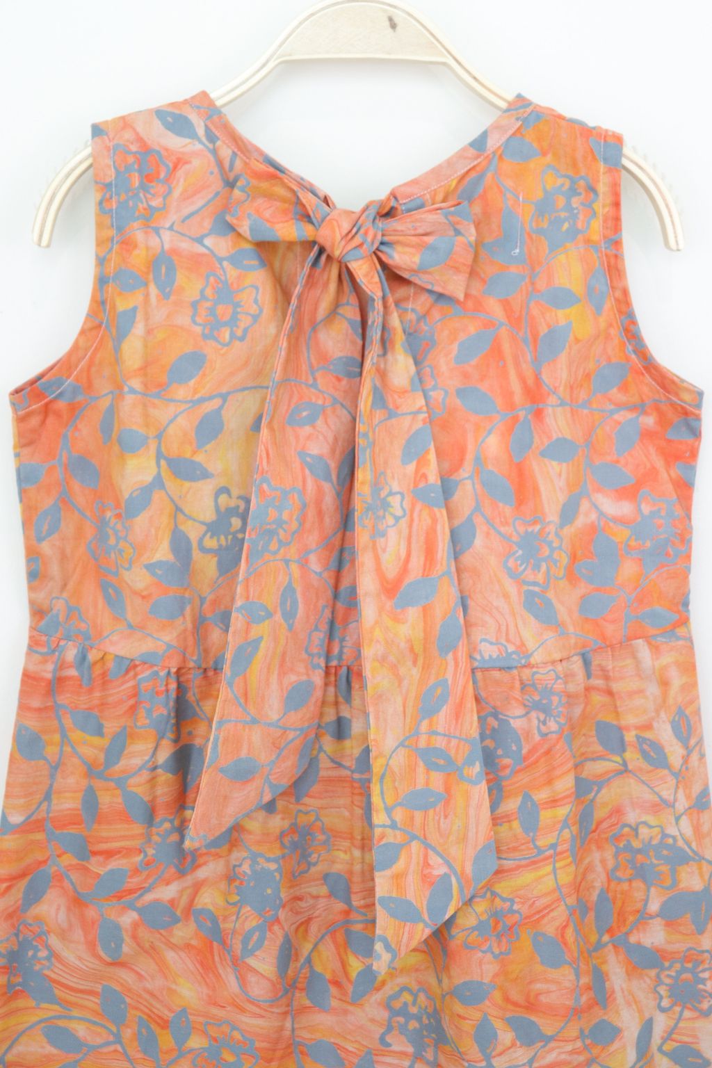 This batik dress is light, comfy, and made for all day play. With a sweet little bow tied at the back of the neck for that extra charm!