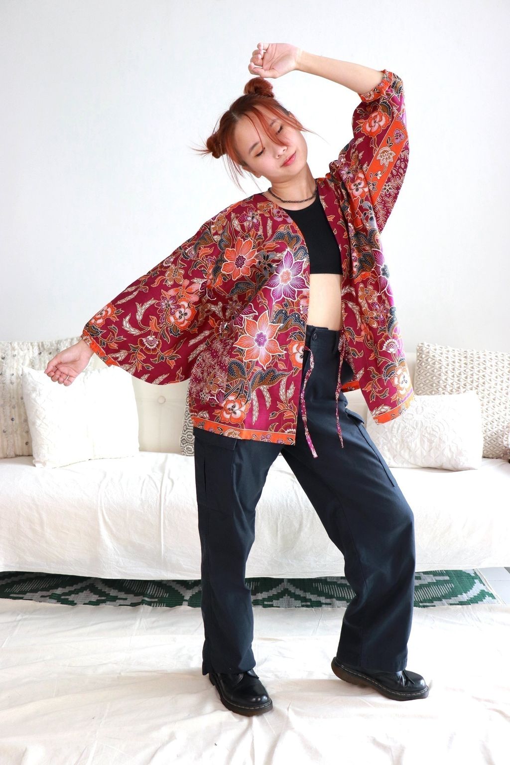 Our batik kimono can be worn over your basics adding that beautiful Indo-Malayan cultural touch that reminds you of your heritage or just to appreciate the art of our region. Keeps you feeling comfortable while indoors and great for those chilly rainy days. Definitely a piece for you to wear throughout the seasons. Made of 100% cotton, they are breathable and cooling, yet keeping you warm enough for comfort while indoors in the air conditioning.
