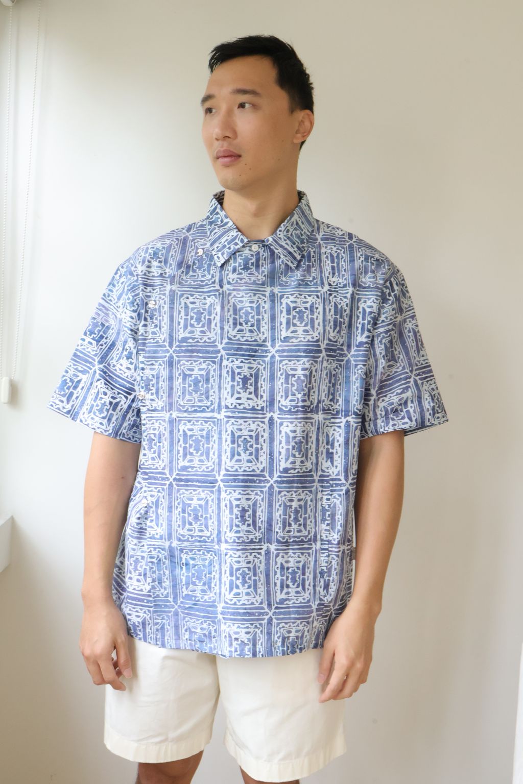Versatile and effortless, this shirt is made of 100% Hand Stamped Cotton Batik by Local Malaysian Artisans. Let's bring batik into the future together as we support the local batik making scene of Malaysia and its heritage. Our support gives hope and adds strength to the new generation of batik makers as they create new and exciting batik prints while continually being innovative.