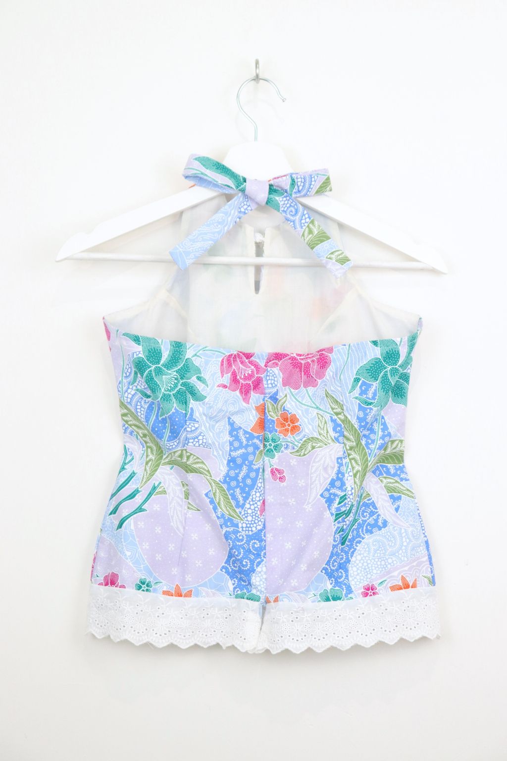 Does C.C. stand for Cute Cute or Chinese Clasp? Honestly… both! Our updated C.C Halter Lace Top brings back the signature batik halter silhouette you love — now with a fresh twist. This new version features a cute, delicate lace trim at the bottom for that extra touch of charm.