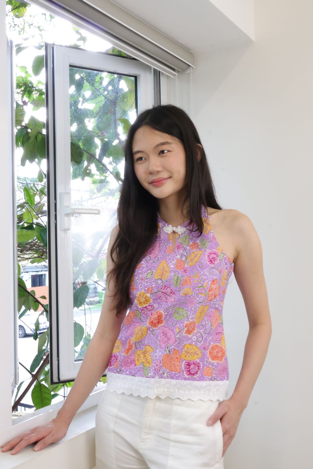 Does C.C. stand for Cute Cute or Chinese Clasp? Honestly… both! Our updated C.C Halter Lace Top brings back the signature batik halter silhouette you love — now with a fresh twist. This new version features a cute, delicate lace trim at the bottom for that extra touch of charm.