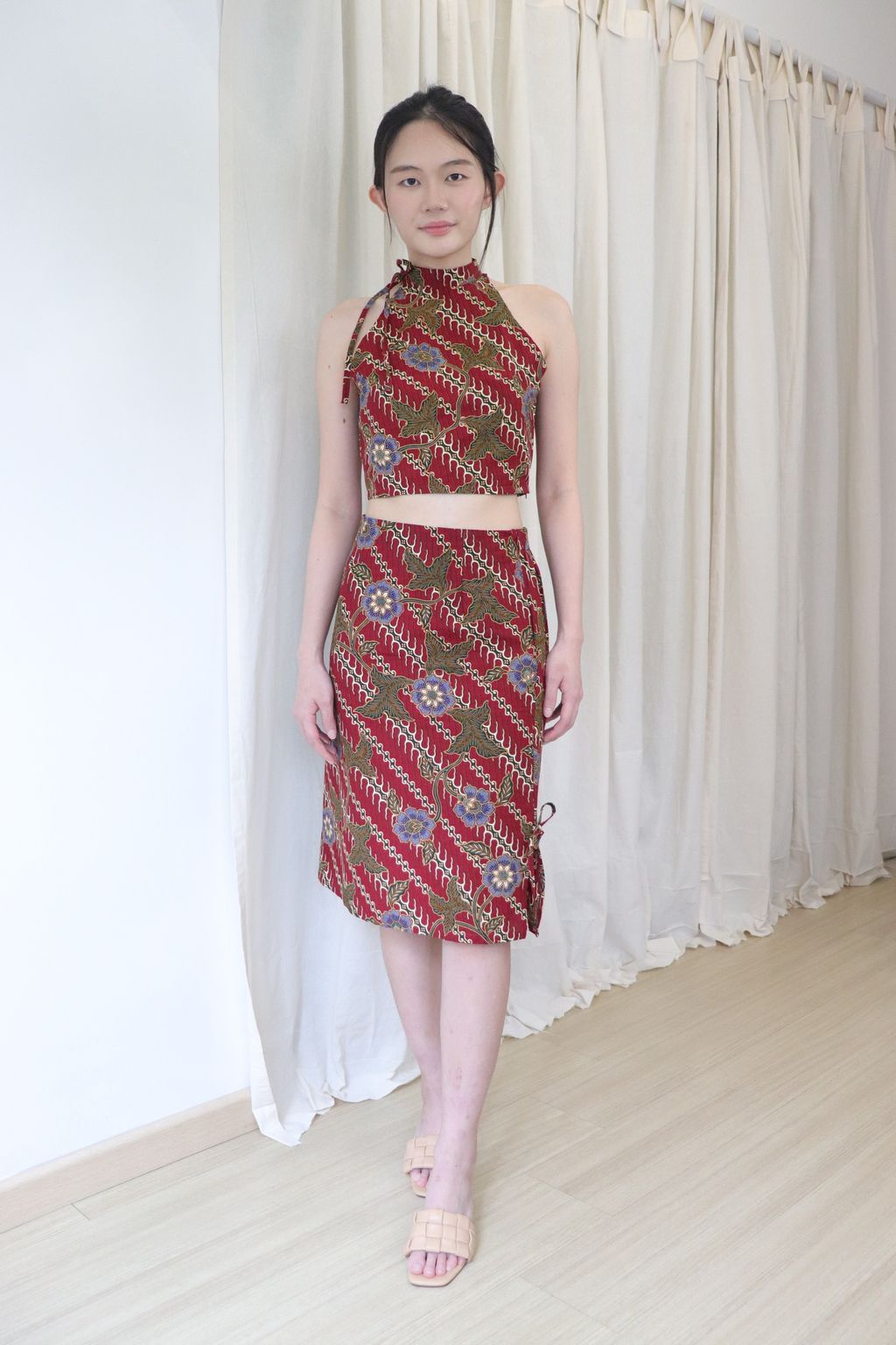 In the spirit of CNY2026 , we created this Matching Set with the idea of ease, comfort, and the beauty of simplicity. This matching set comes with a Side Tie Batik Top and a matching Side Tie Batik Skirt, embracing batik with unique modern cuts and oriental detailing.
