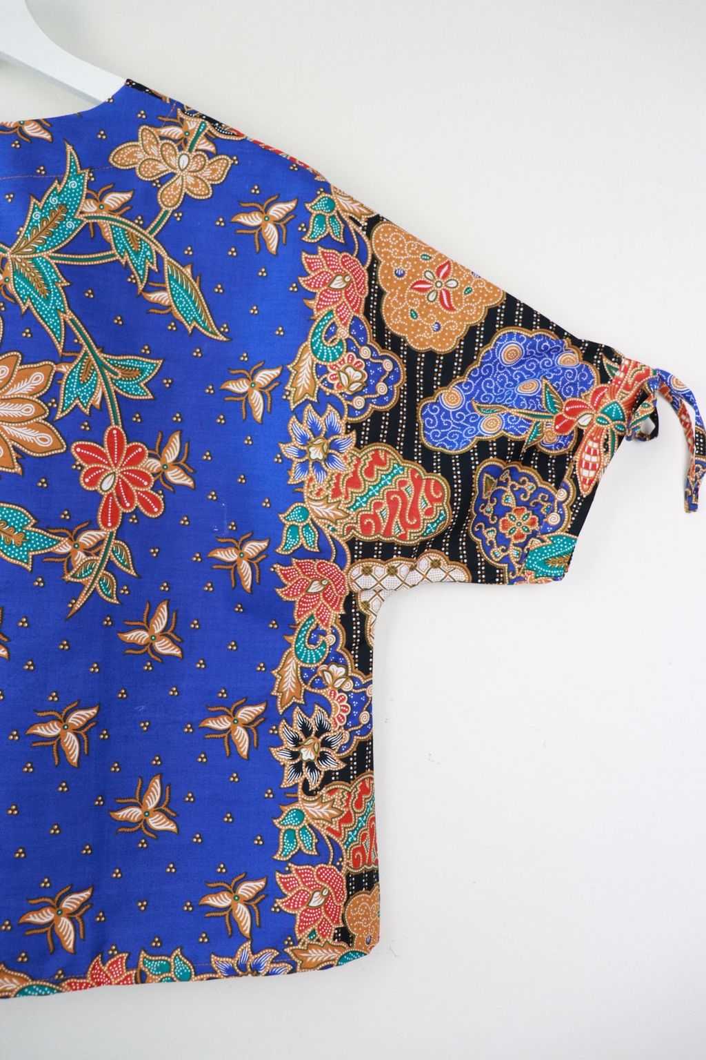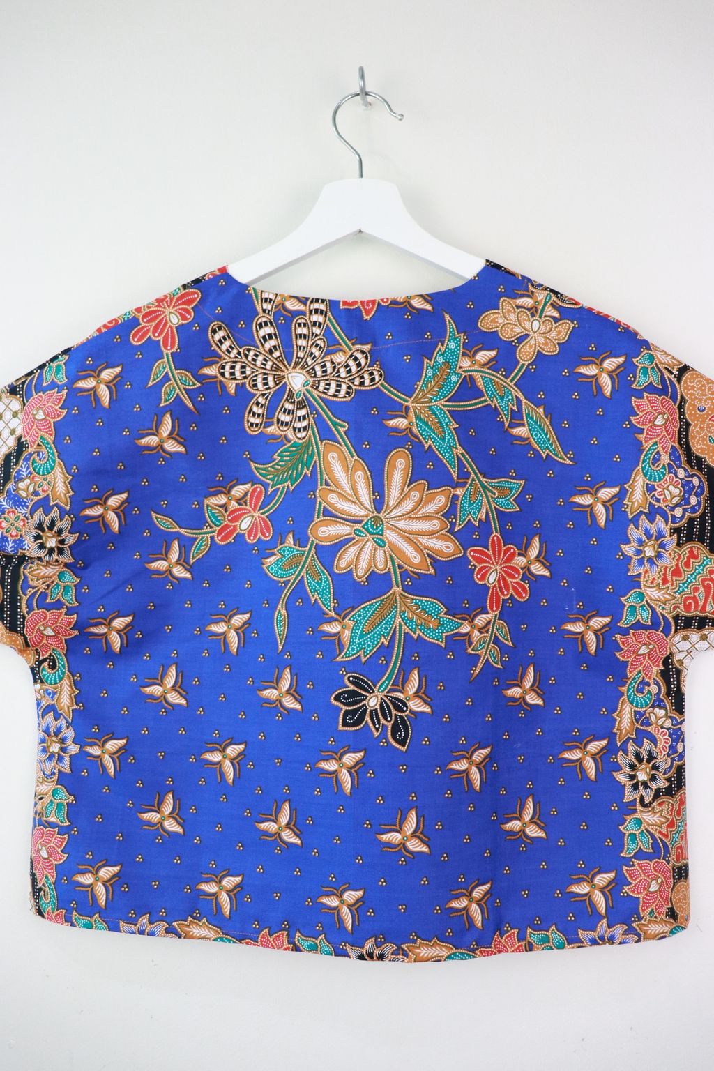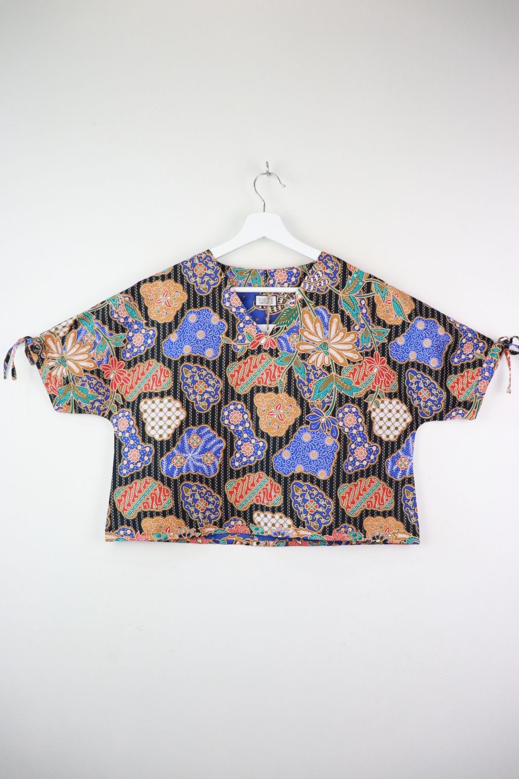 The simple V - neck batik top that suits most figures very well. With sleeves that fall on the shoulders. Wear this with a plain bottom. Both work and play friendly !