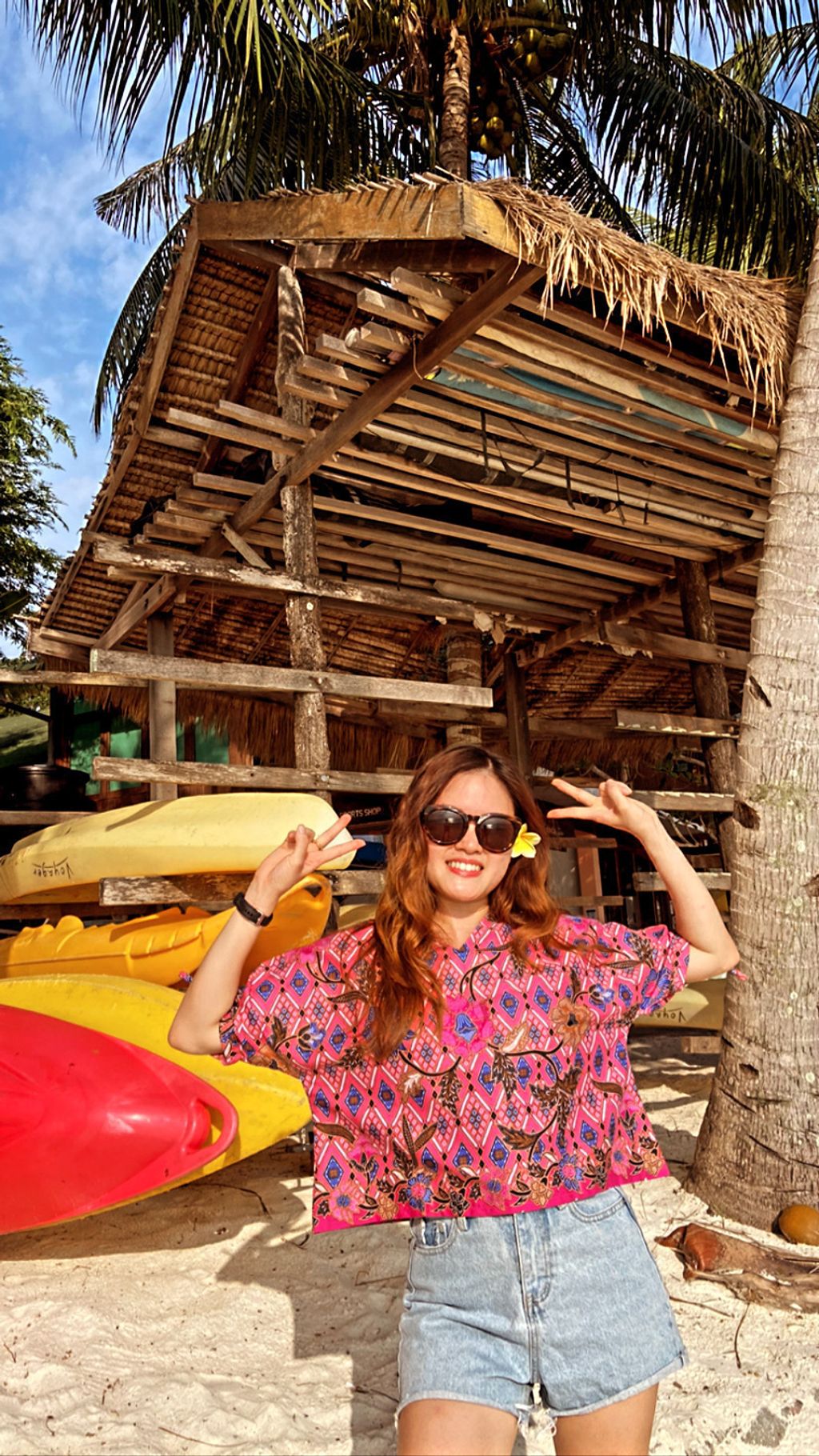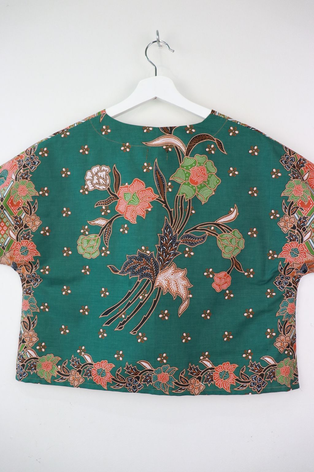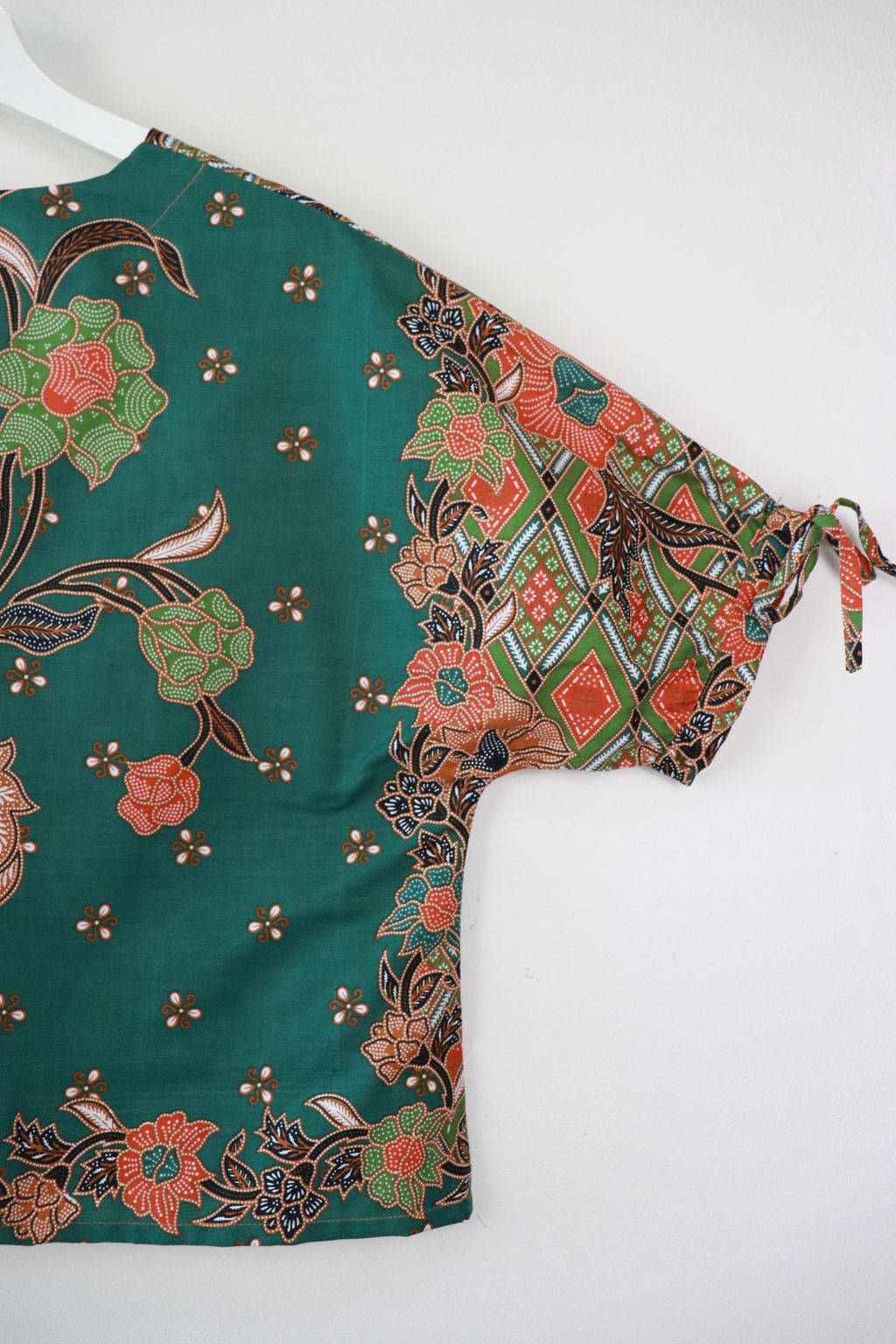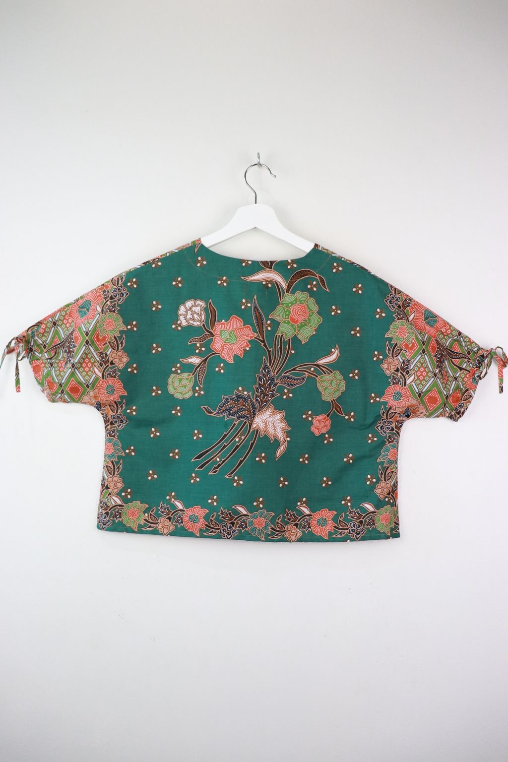 The simple V - neck batik top that suits most figures very well. With sleeves that fall on the shoulders. Wear this with a plain bottom. Both work and play friendly !